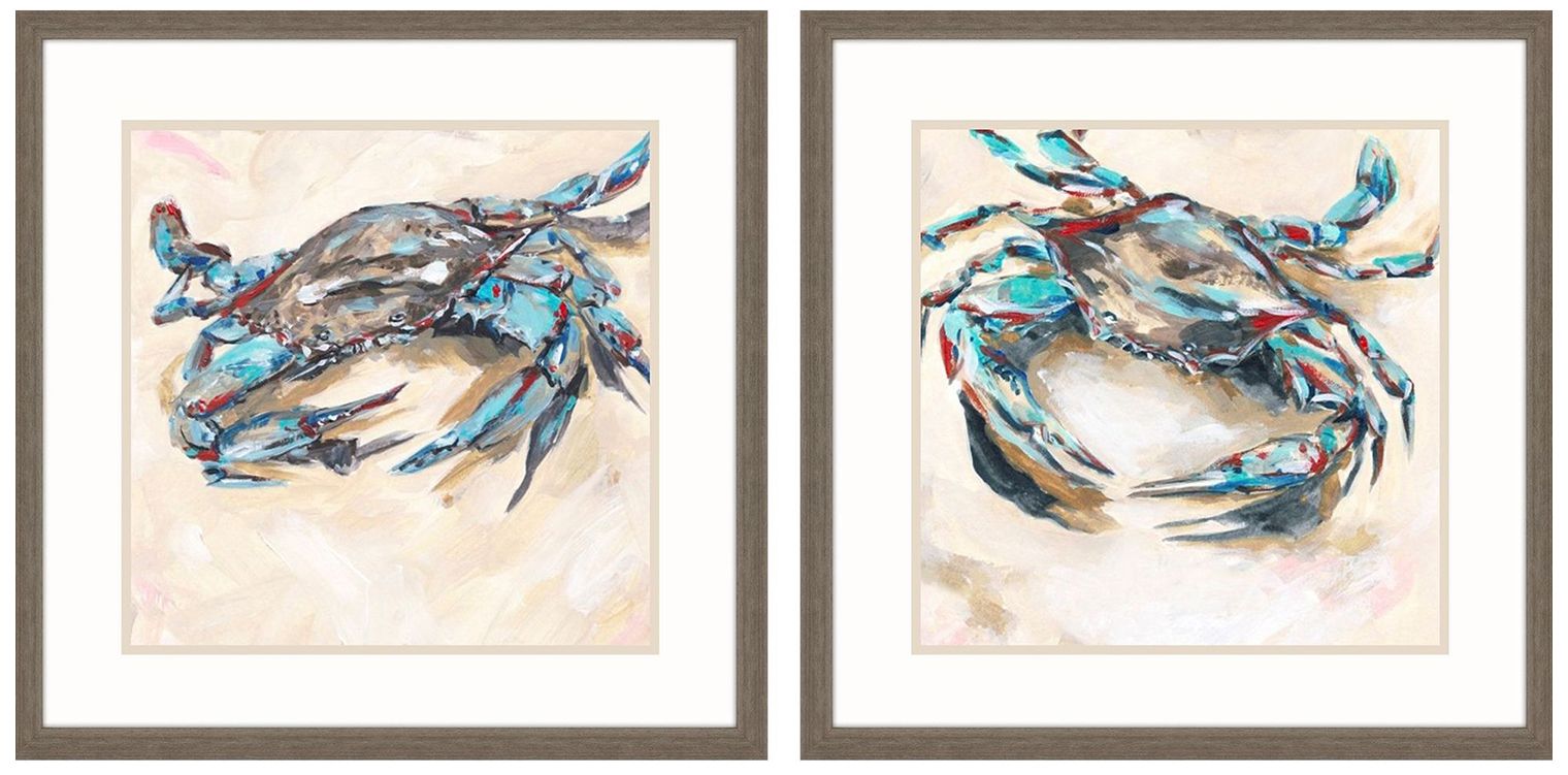 Blue and Red Crab 26"W x 26"H Framed Art Set of 2