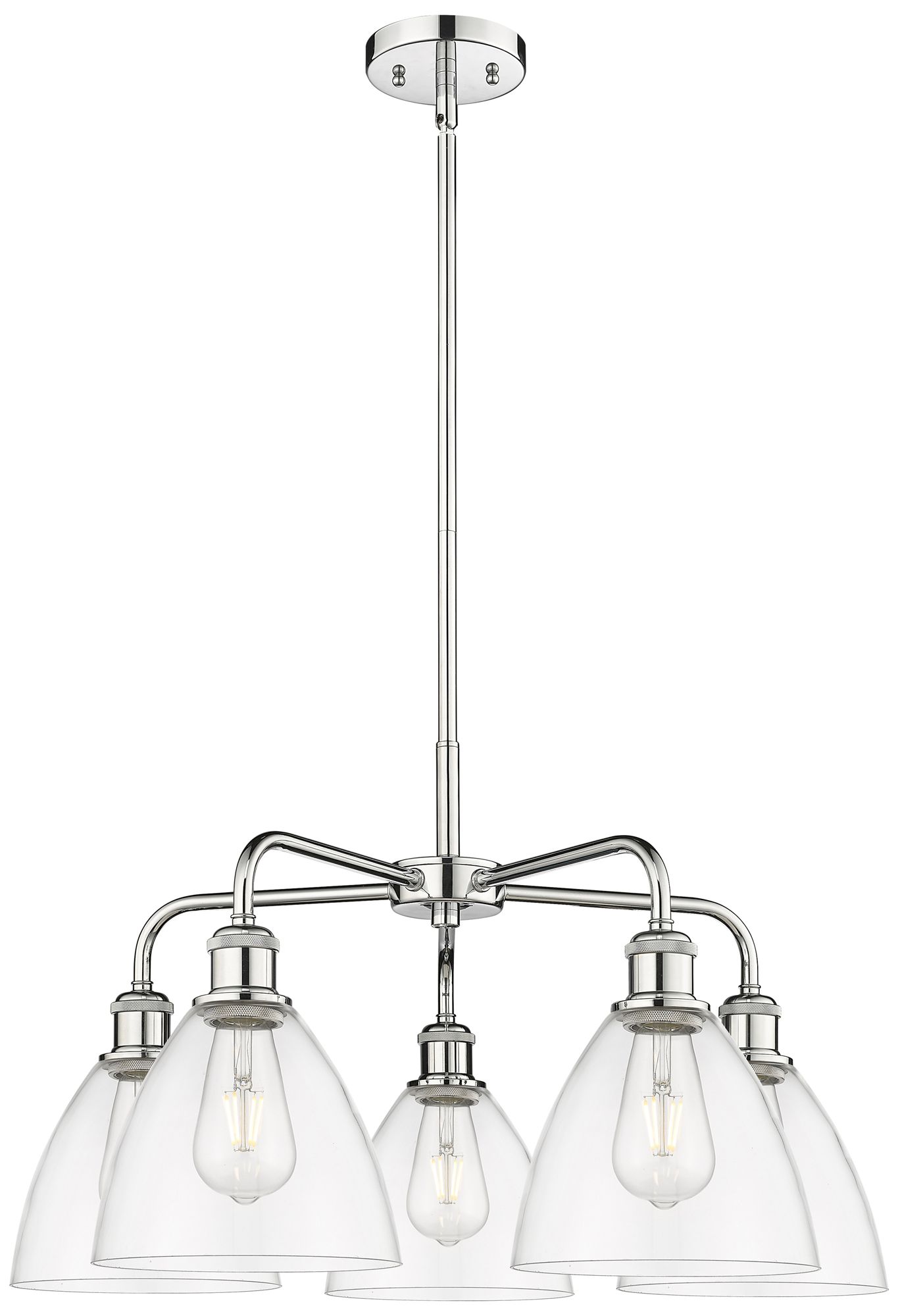 Bristol Glass 25.5"W 5 Light Polished Chrome Stem Chandelier w/ Clear