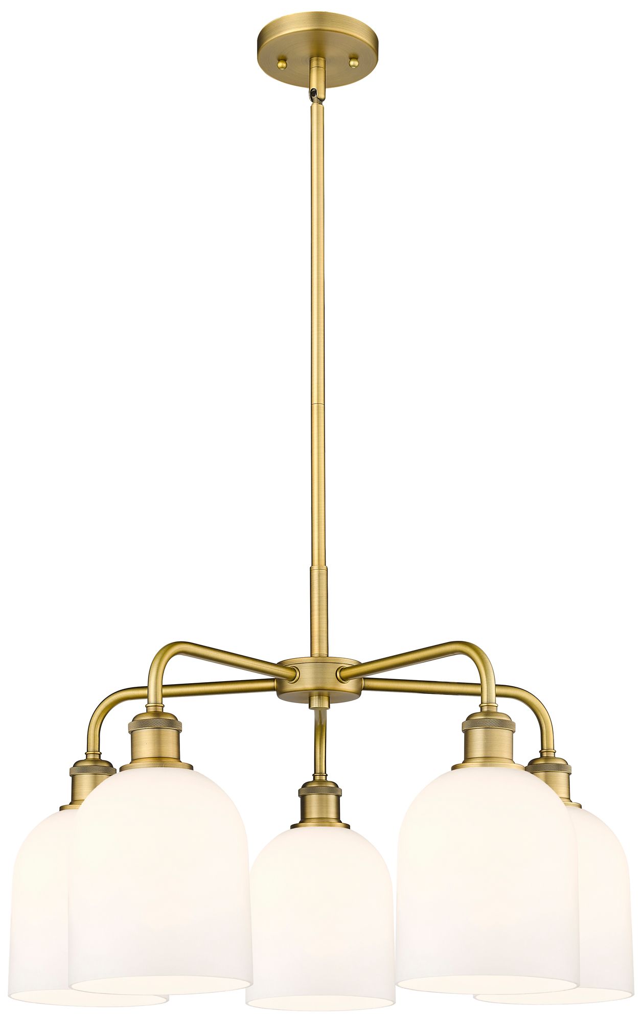 Bella 23.5"W 5-Light Brushed Brass Stem Chandelier w/ Gloss White Shad