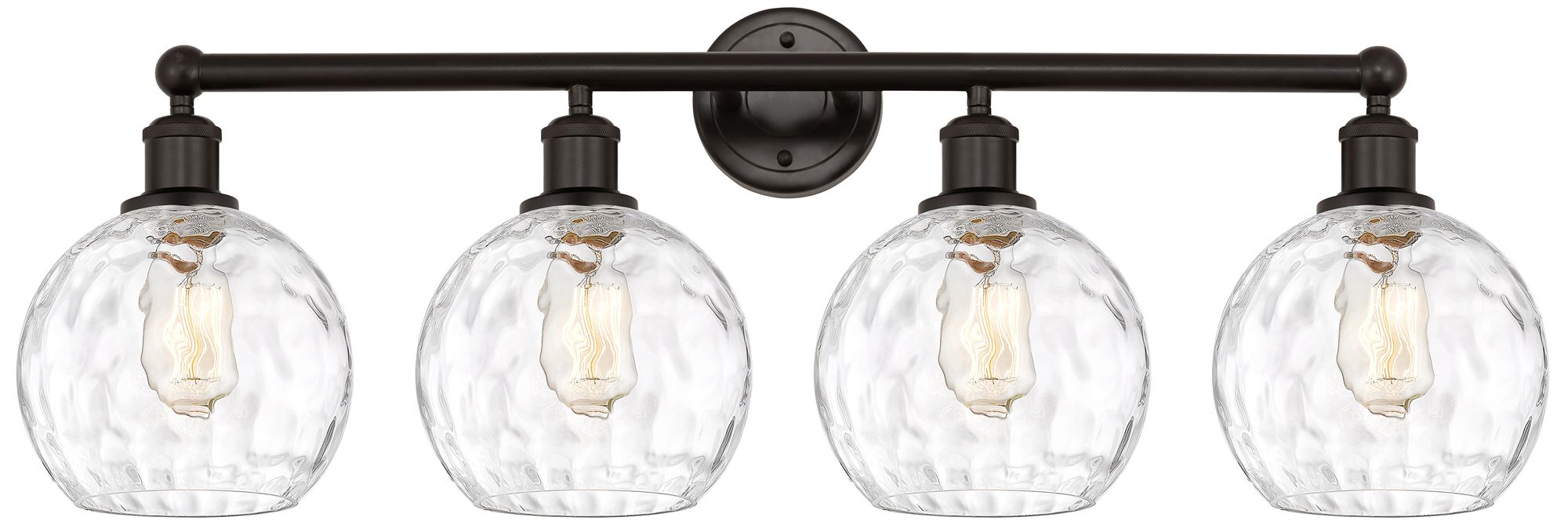 Athens 35"W 4 Light Oil Rubbed Bronze Bath Light w/ Water Glass Shade
