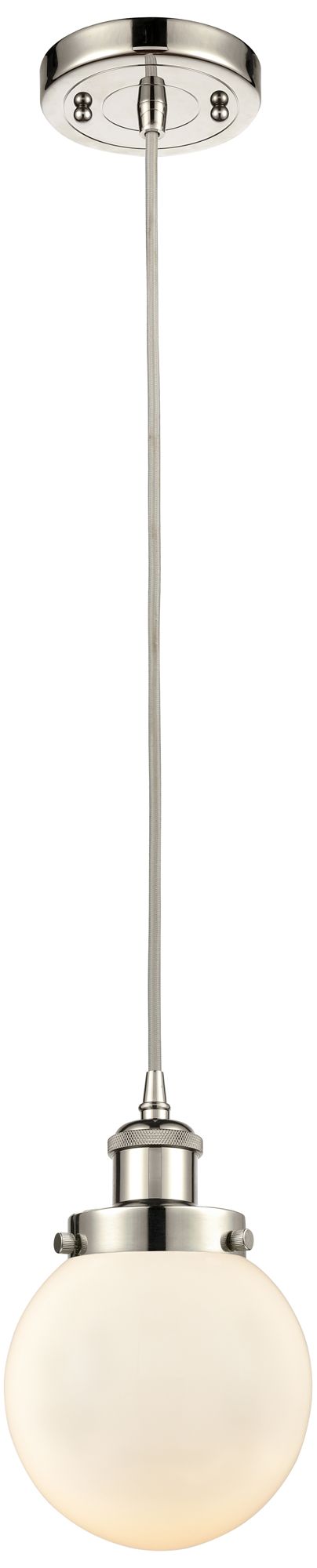 Ballston Urban Beacon 6" LED Mini Pendant - Polished Nickel - Matte Wh