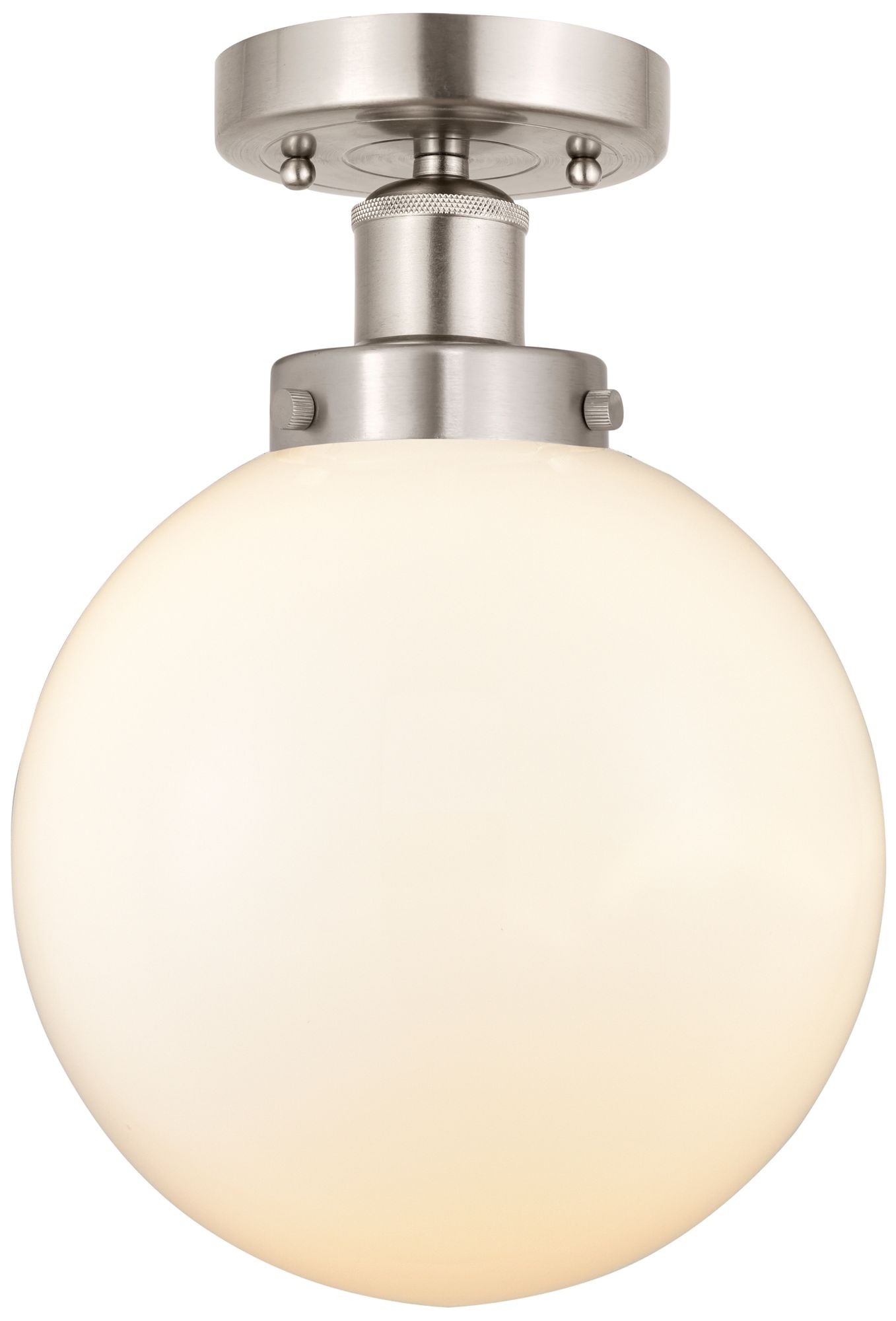 Edison Large Beacon 7" Brushed Satin Nickel Semi Flush Mount w/ White