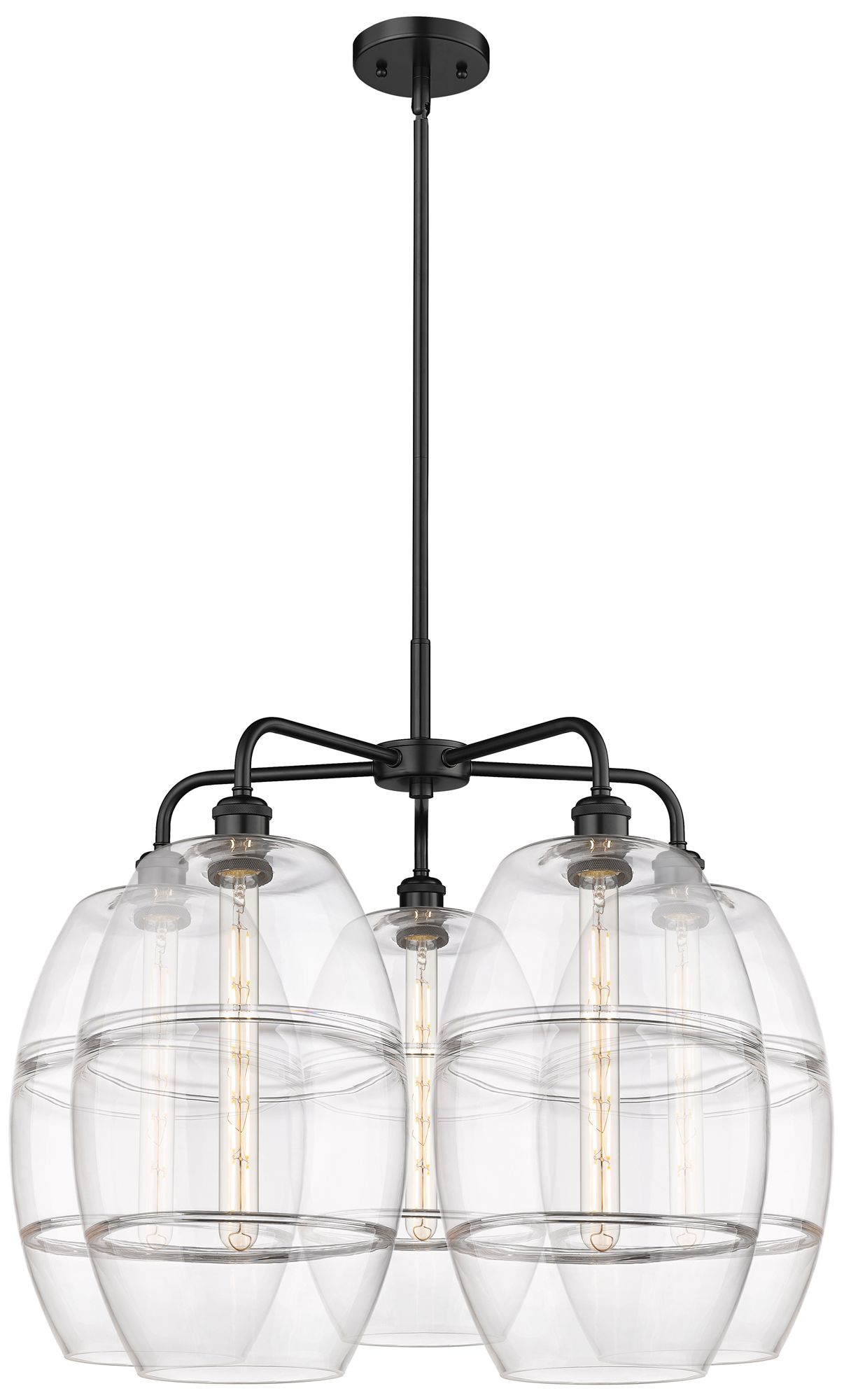 Ballston Vaz 28"W 5-Light Matte Black Stem Chandelier w/ Clear Shade