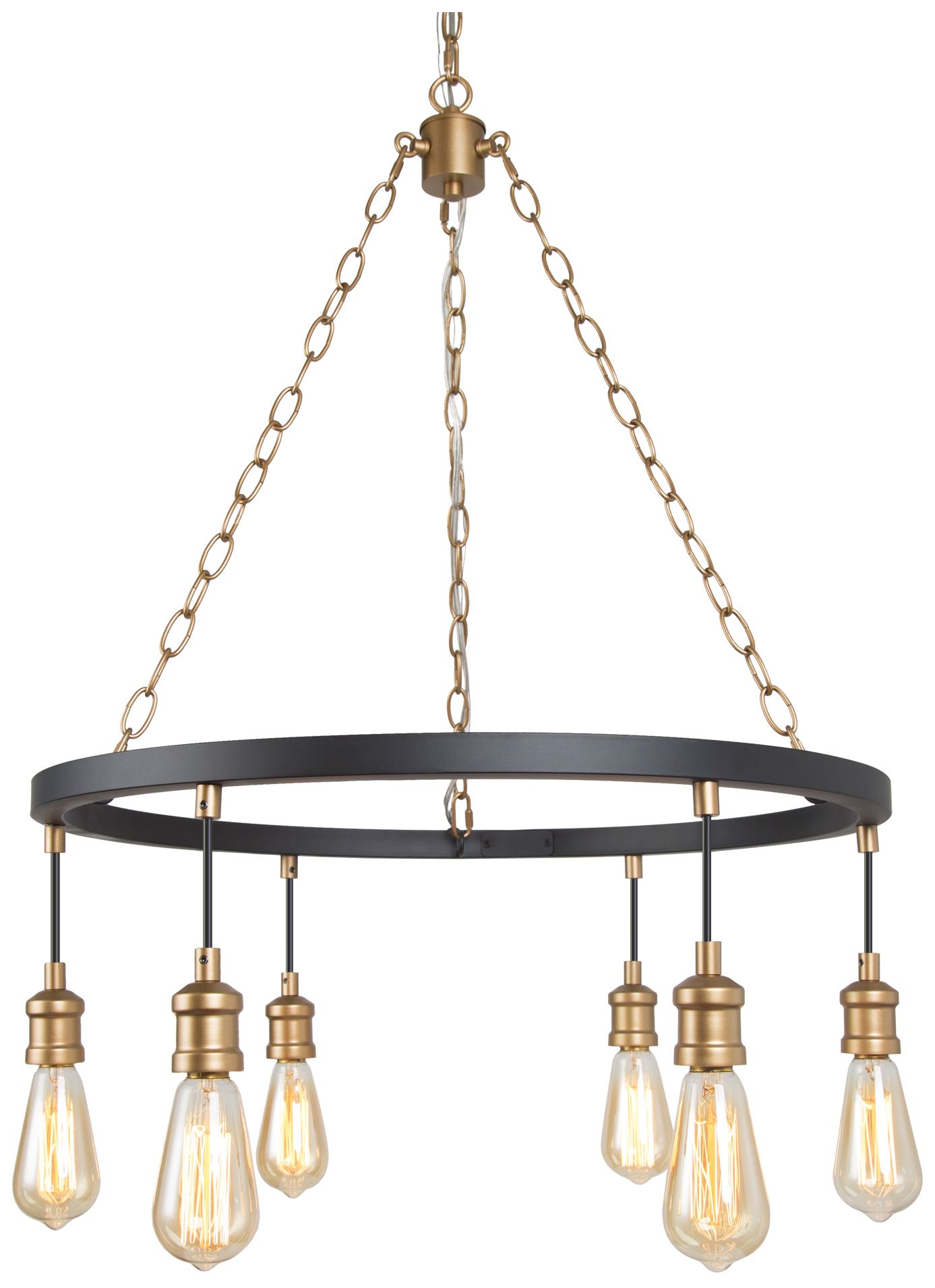 Altris 24.8" Wide Black And Gold 6-Light Wagon Wheel Chandelier