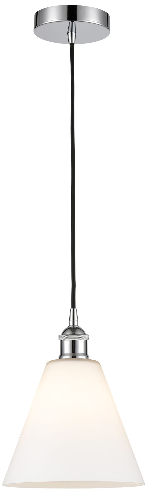 Edison Glass Cone 8" Polished Chrome Cord Hung Mini Pendant w/ White S
