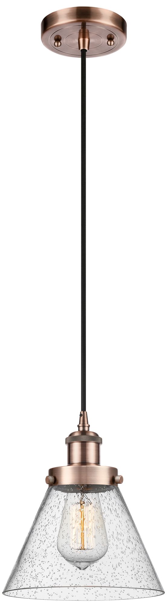 Ballston Urban Cone 8" Antique Copper Corded Mini Pendant w/ Seedy Sha