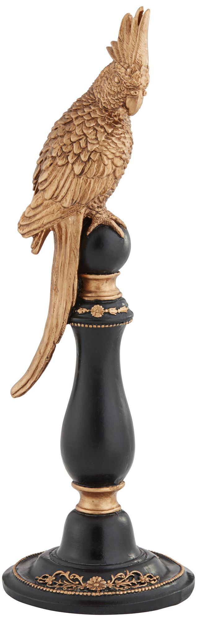 Bird 13" High Hand-Painted Black and Gold Decorative Statue