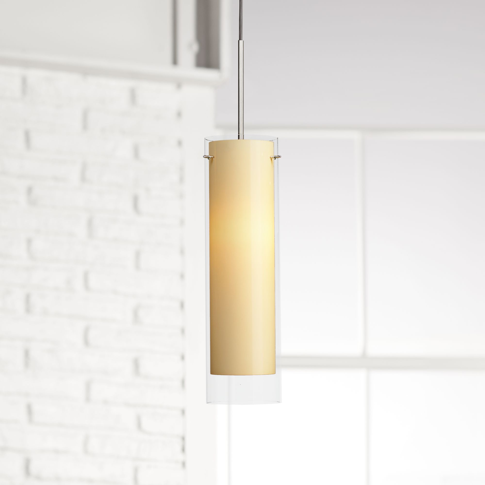 View 4 3/4"W Satin Nickel LED Mini Pendant with Cream Glass