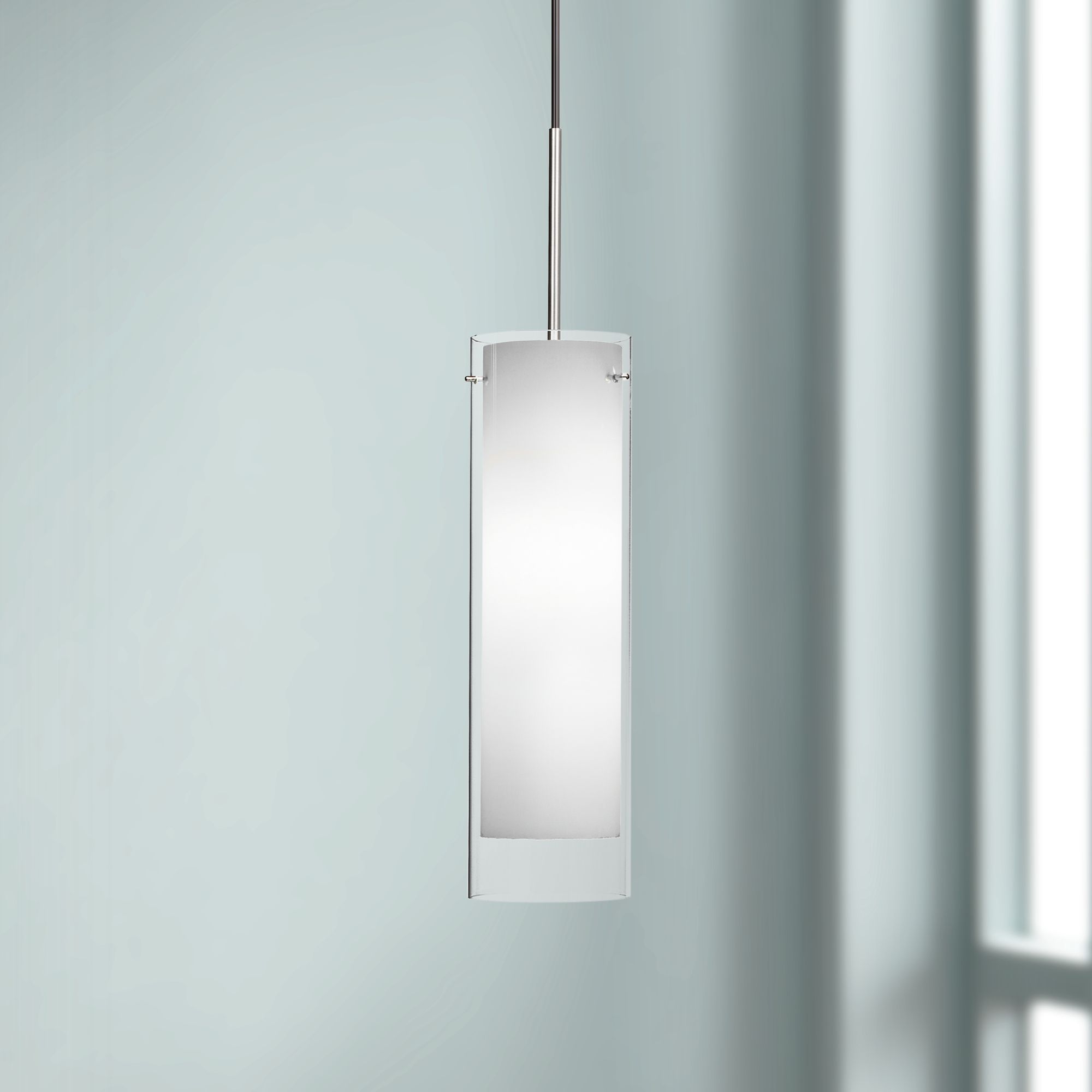 View 4 3/4" Wide Nickel and White Glass Cylinder Modern Mini Pendant