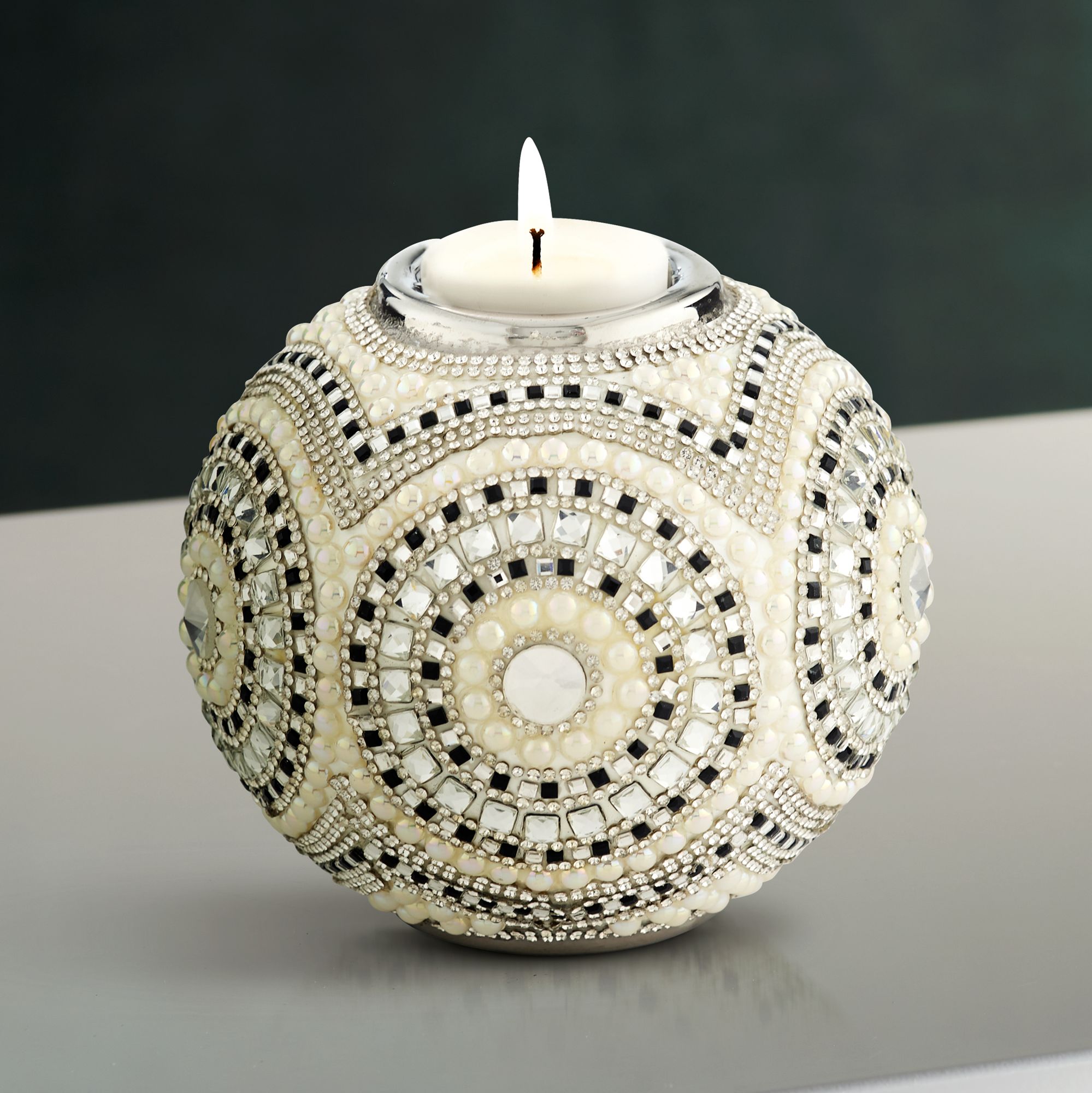 Beaded Silver Plating 4 3/4" Wide Tealight Candle Holder