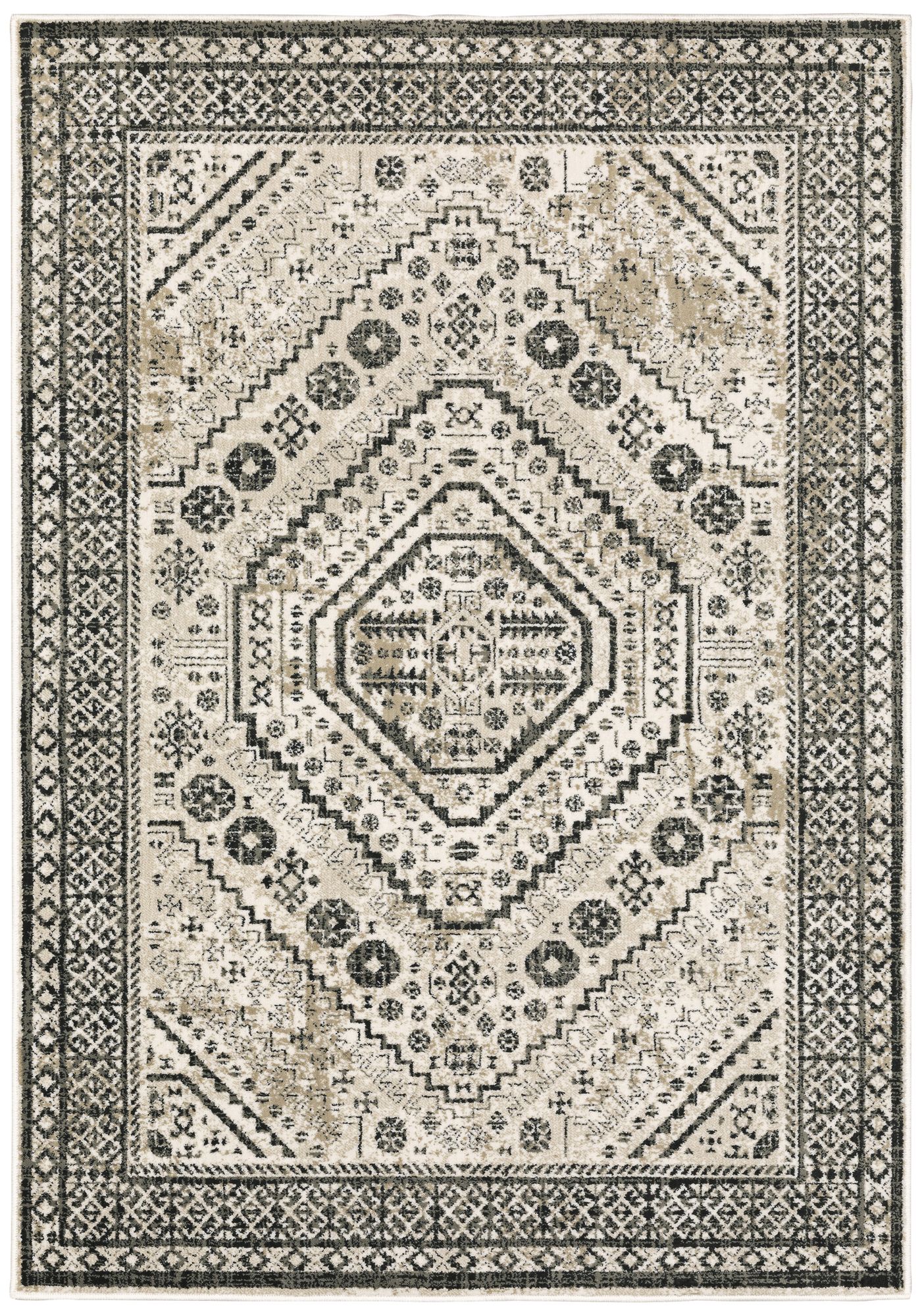 Georgia 3'10"x5'5" Ivory and Gray Oriental Area Rug
