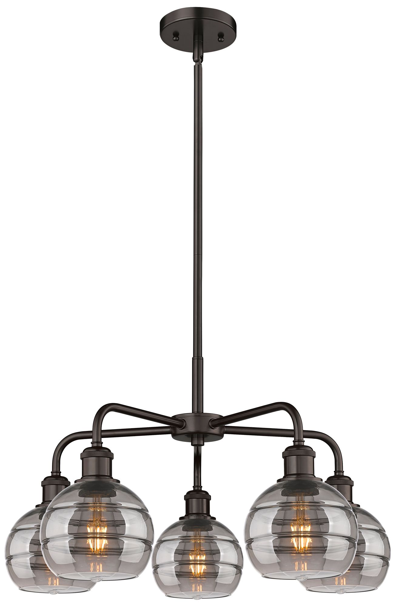Rochester 23.88"W 5-Light Oiled Bronze Stem Chandelier w/ Smoke Shade