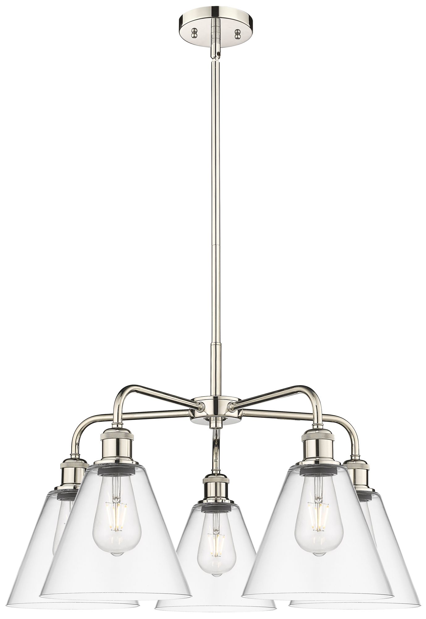 Berkshire 26"W 5 Light Polished Nickel Stem Hung Chandelier w/ Clear S