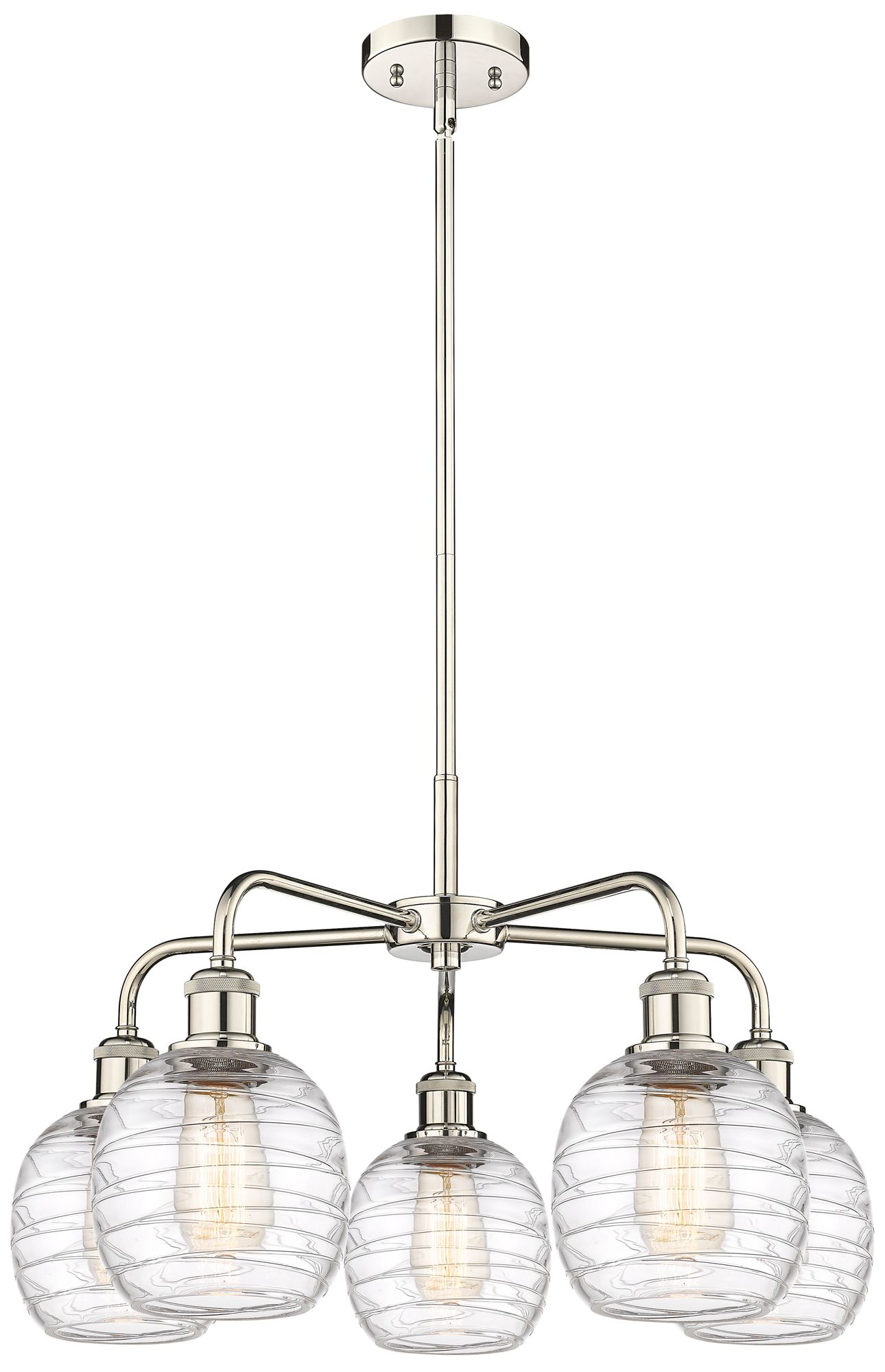 Belfast 24"W 5 Light Polished Nickel Stem Chandelier w/ Deco Swirl Sha