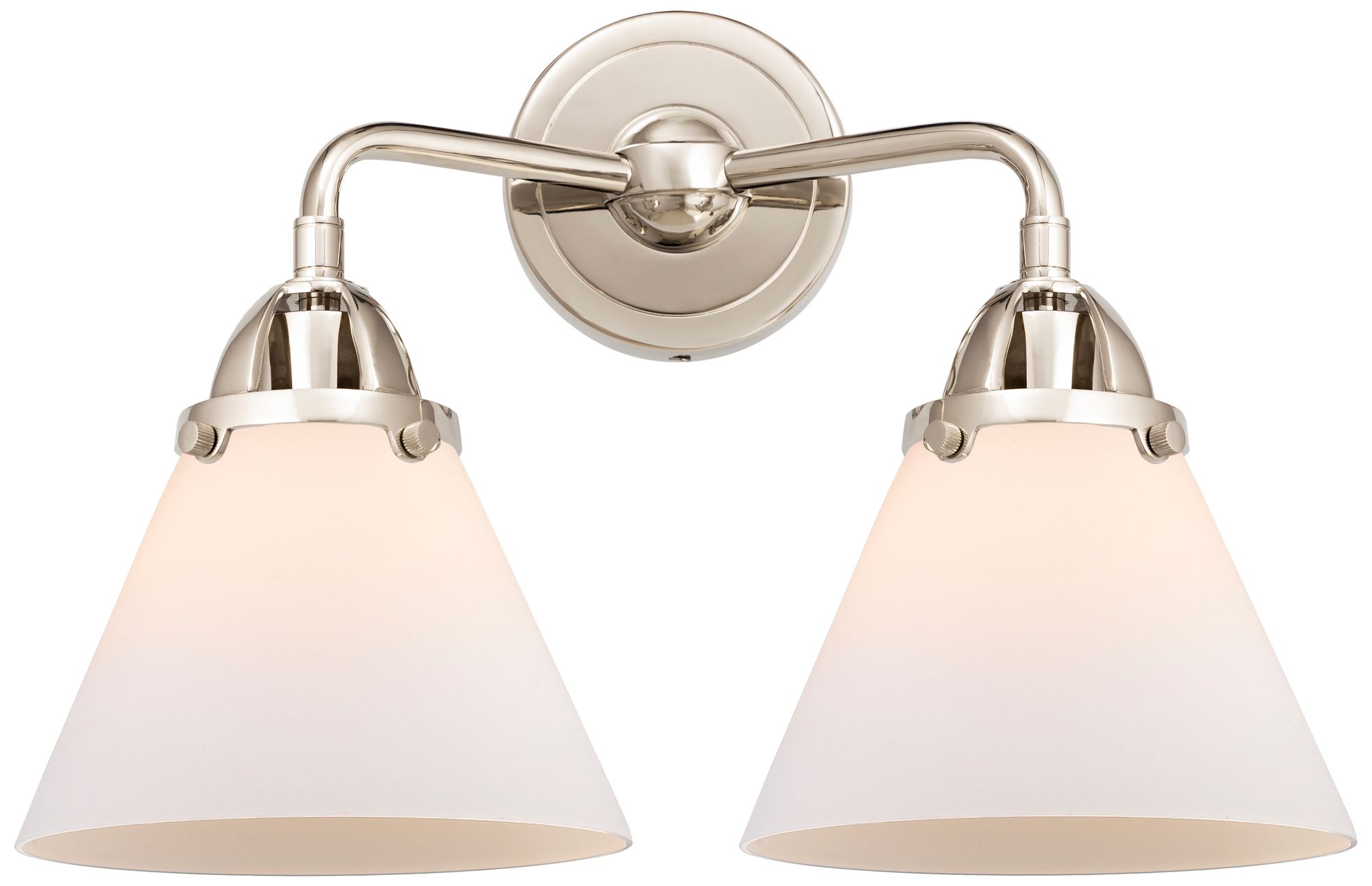 Nouveau 2 Cone 8" 2 Light 16" Bath Light - Polished Nickel - Whit