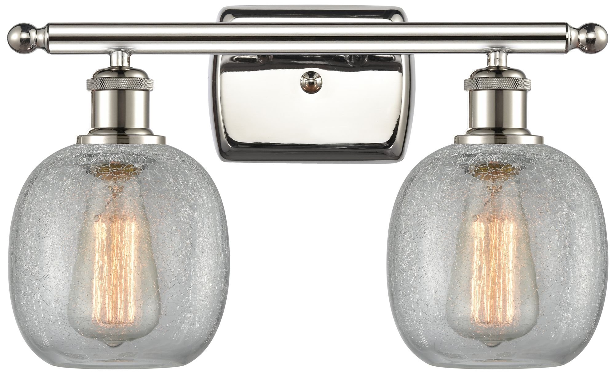 Belfast 16" 2-Light Polished Nickel Bath Light w/ Clear Crackle Shade