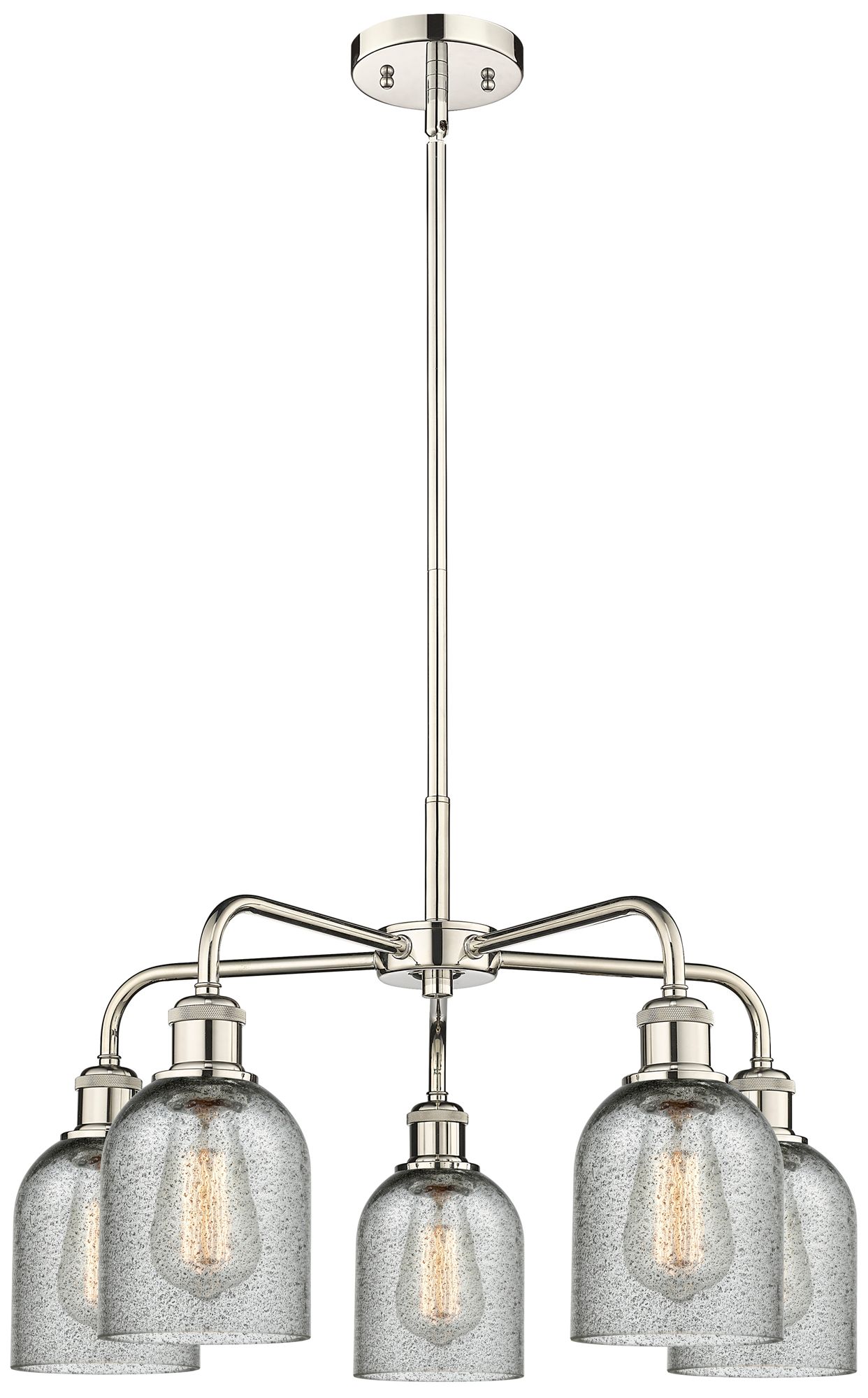 Caledonia 23"W 5 Light Polished Nickel Stem Chandelier w/ Charcoal Sha