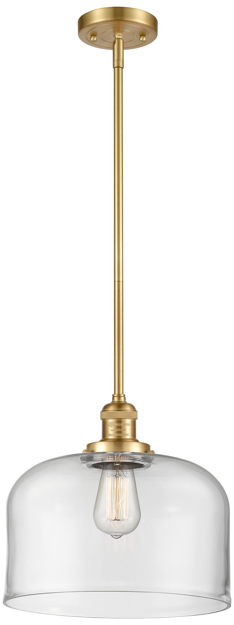 Franklin Restoration Bell 12" Gold Stemmed Mini Pendant w/ Clear Shade