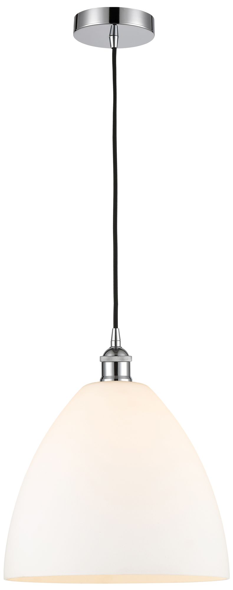 Edison Dome 12" Polished Chrome Cord Hung Mini Pendant w/ Matte White