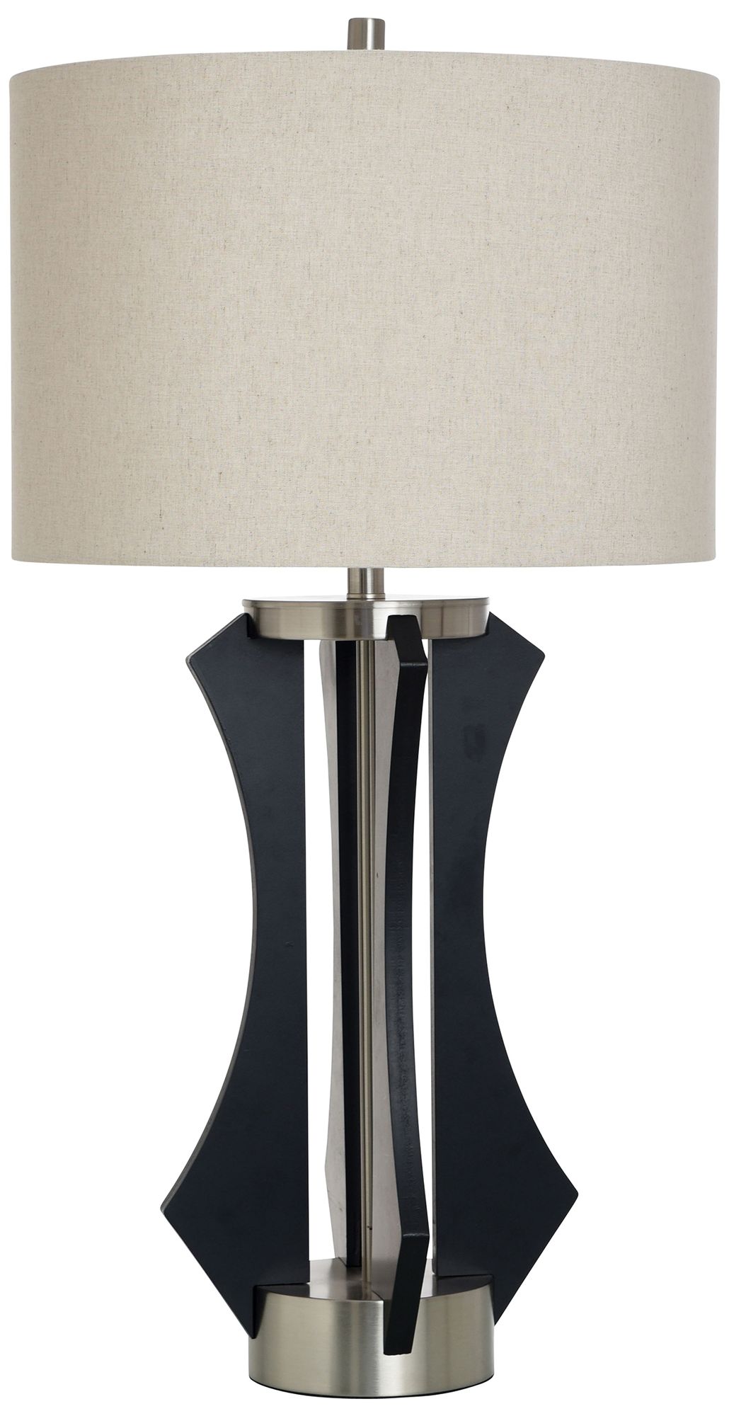 Arturo 23.75" High Black And Silver Wooden Table Lamp With Beige Shade