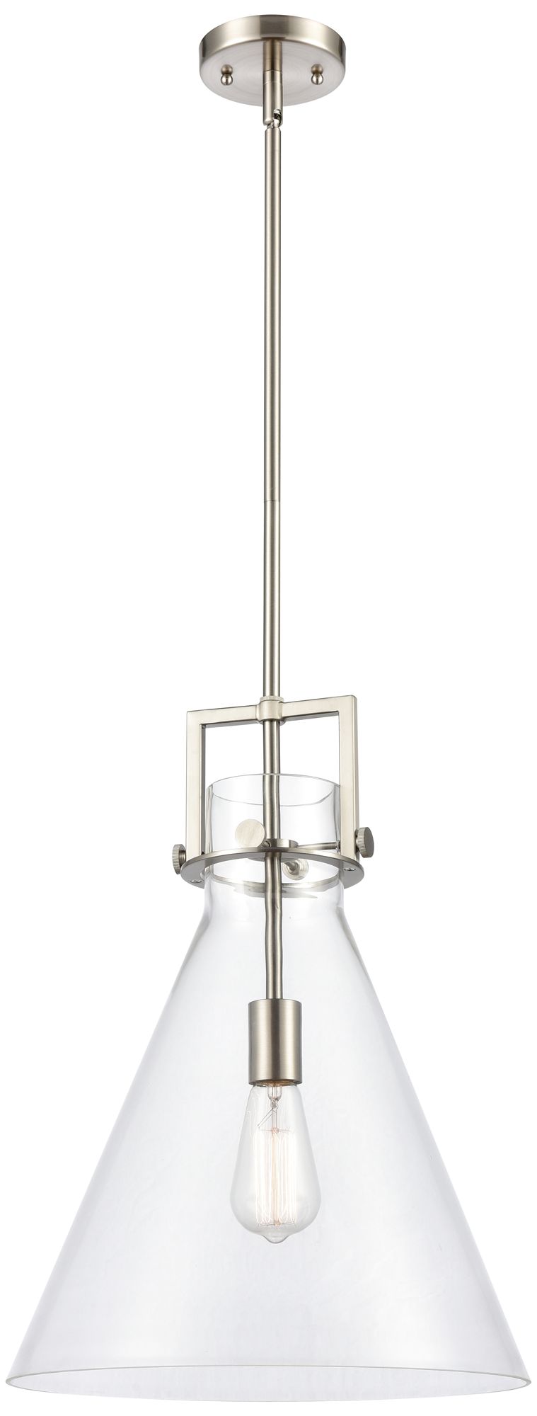 Newton Cone 14" Brushed Satin Nickel LED Stem Hung Pendant With Clear