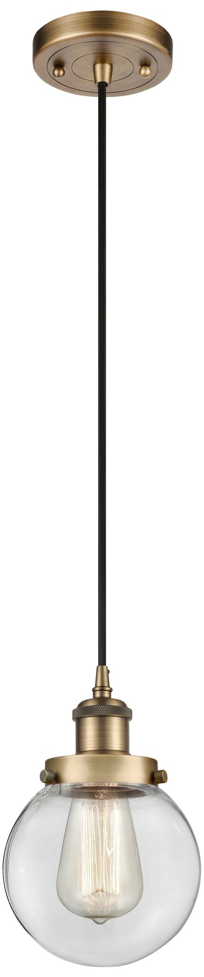 Ballston Urban Beacon 6" Mini Pendant - Brushed Brass - Clear Shade