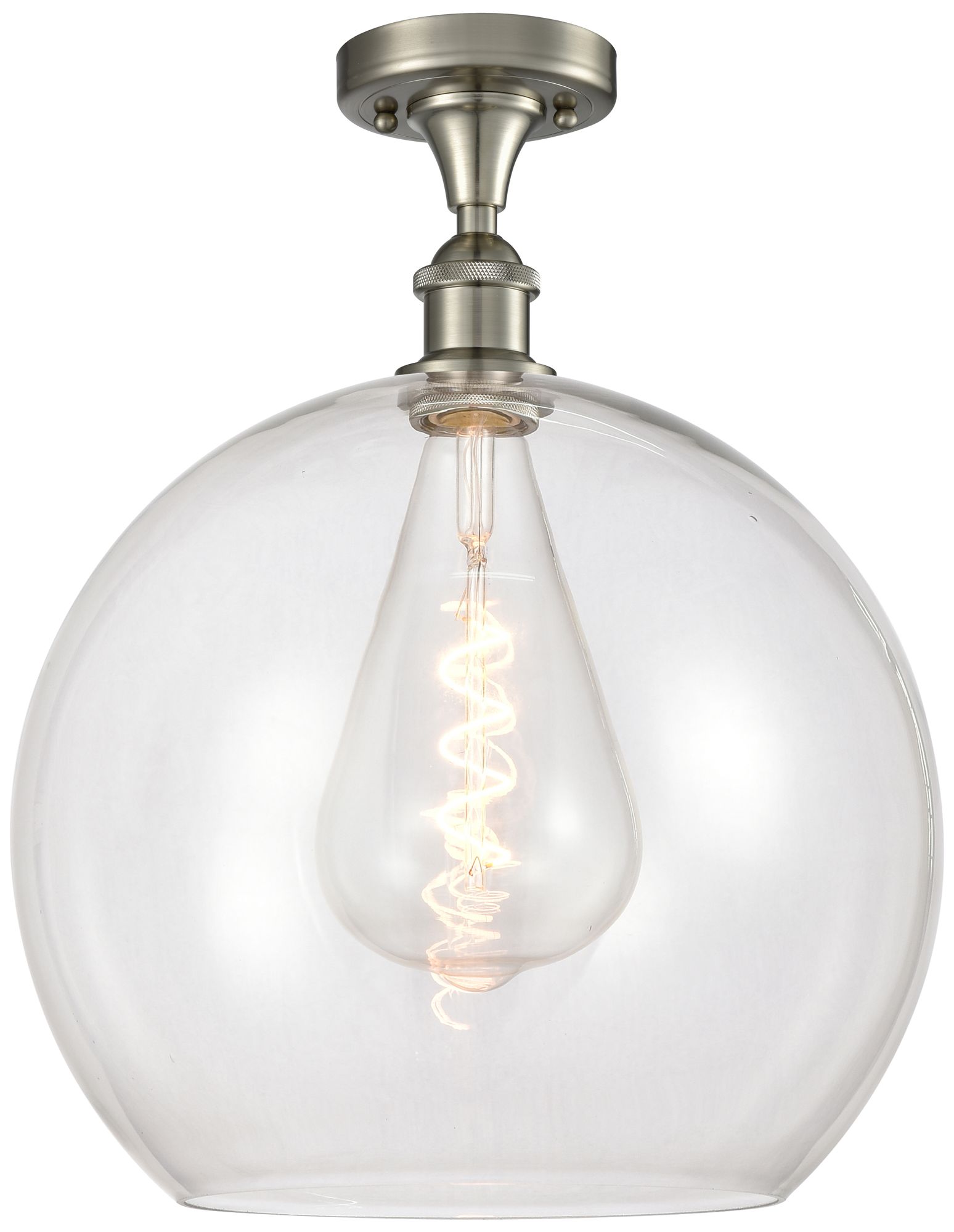 Athens 14" Semi-Flush Mount - Brushed Satin Nickel - Clear Shade