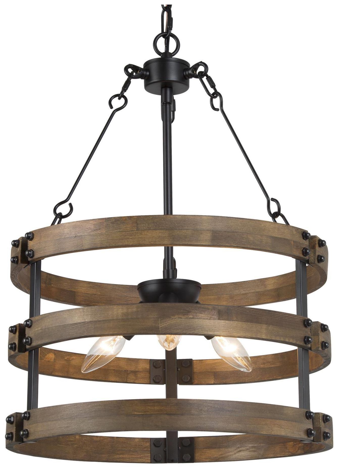 Follio 15.7" Wide 3-Light Antique Wood Drum Chandelier