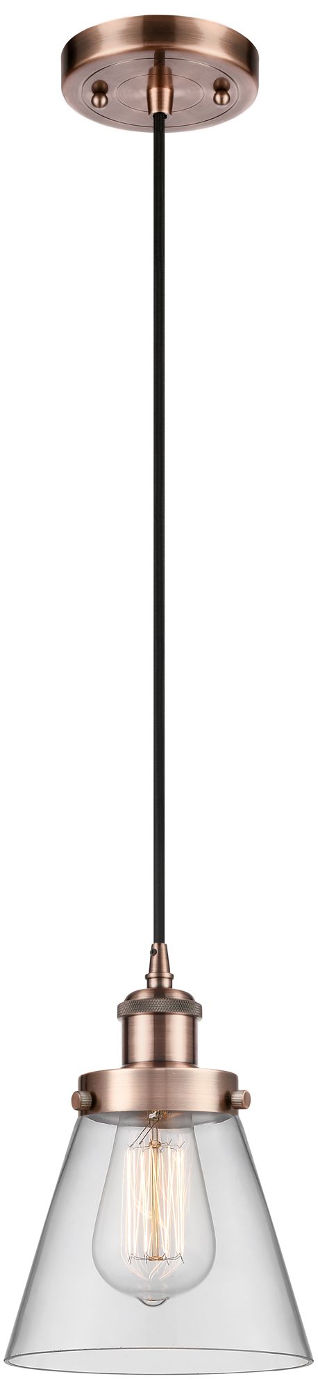 Ballston Urban Cone 6" Antique Copper Corded Mini Pendant w/ Clear Sha