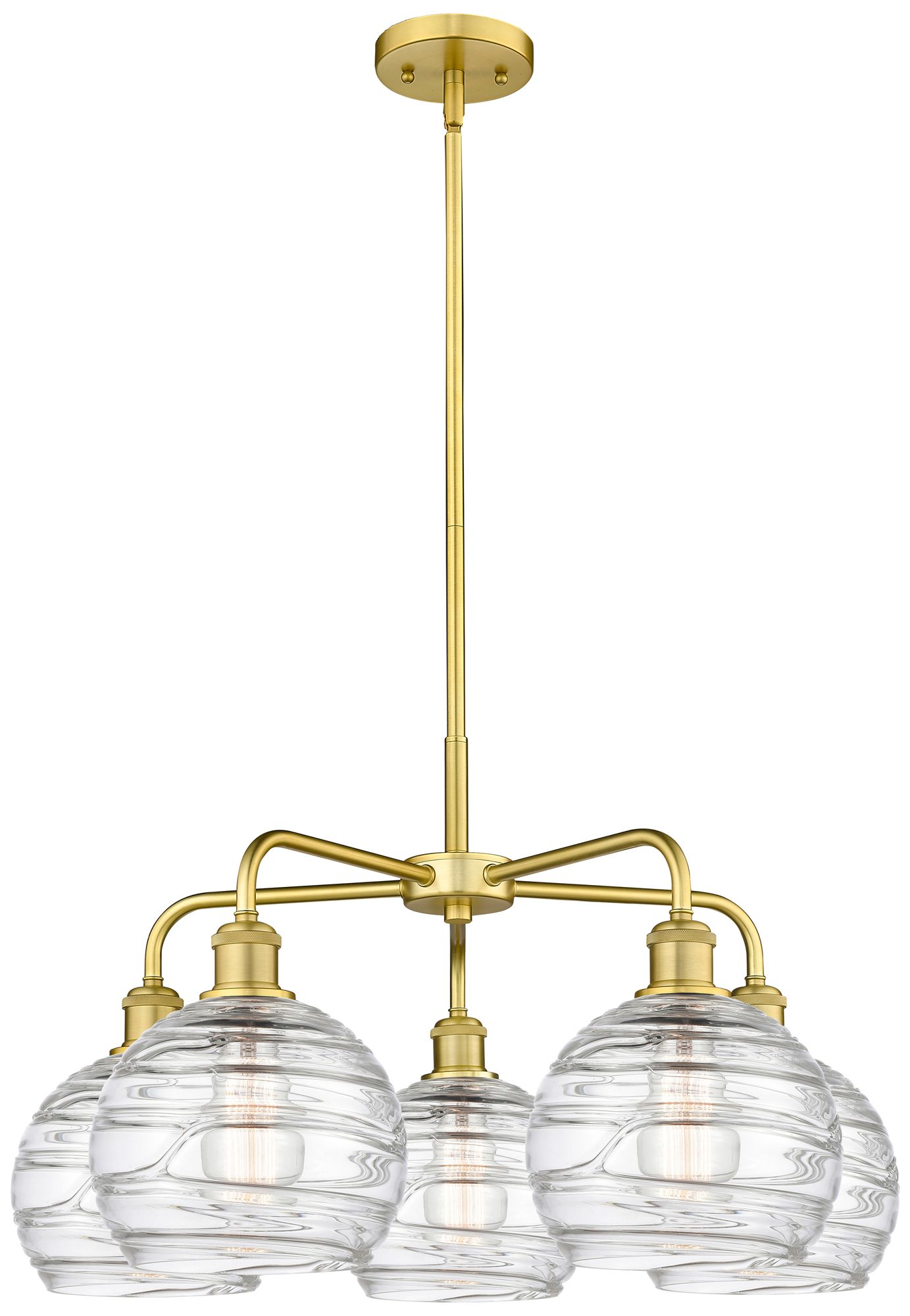 Athens 26"W 5 Light Satin Gold Stem Hung Chandelier With Deco Swirl Sh
