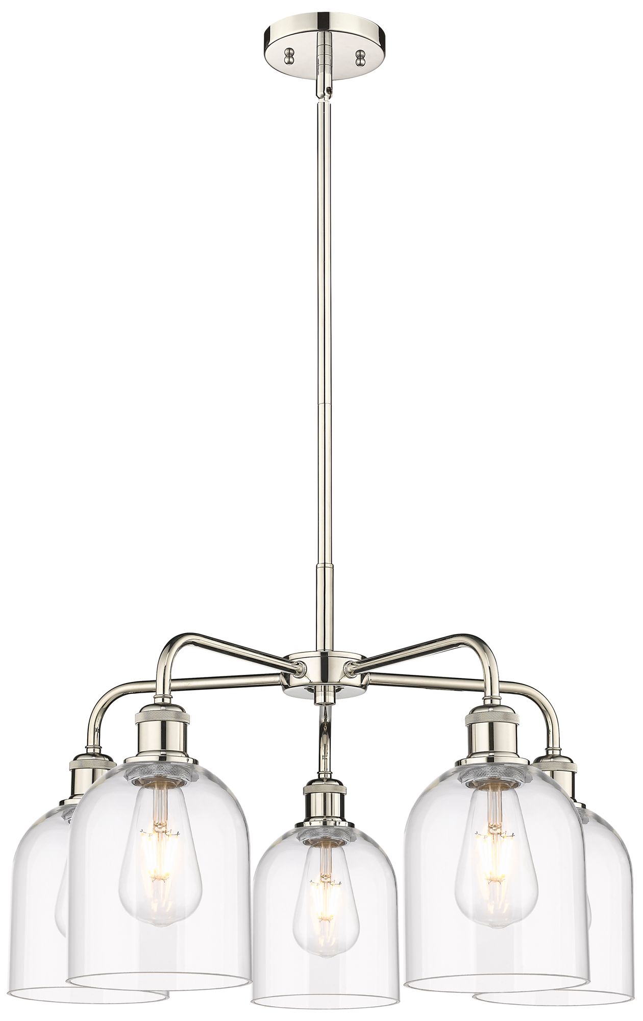 Bella 23.5"W 5-Light Polished Nickel Stem Chandelier w/ Clear Shade