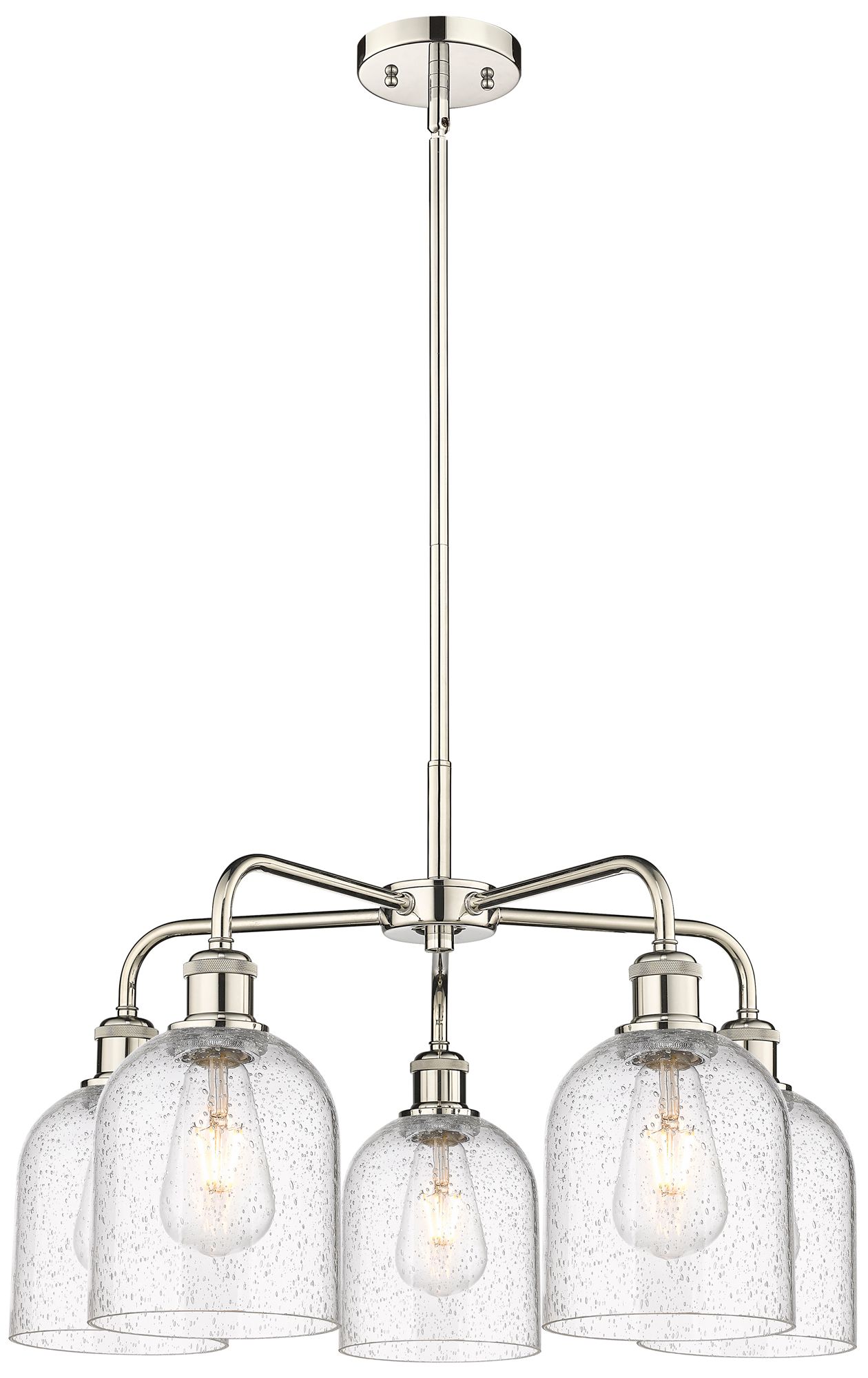 Bella 23.5"W 5-Light Polished Nickel Stem Chandelier w/ Seedy Shade