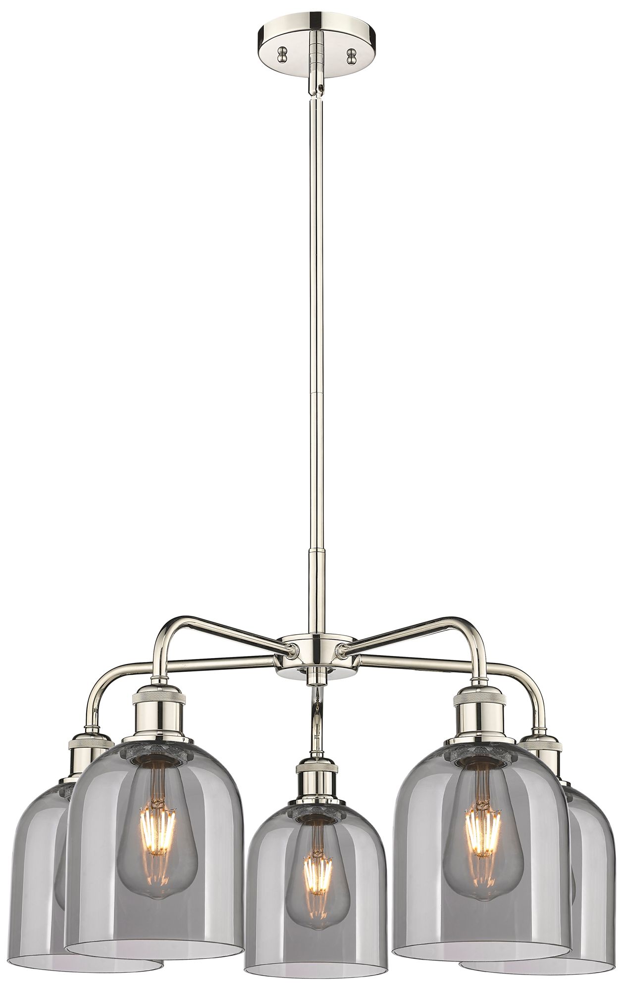 Bella 23.5"W 5-Light Polished Nickel Stem Chandelier w/ Smoke Shade