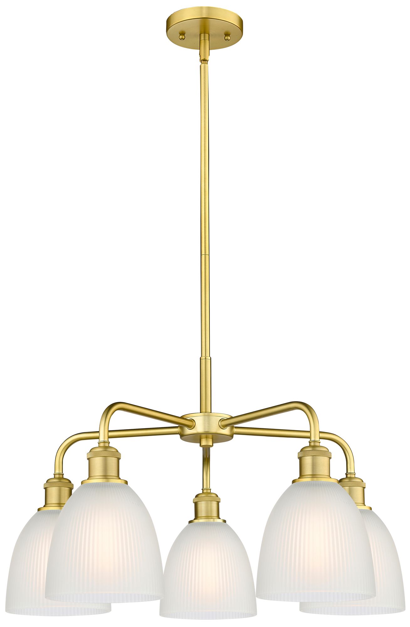 Castile 24" Wide 5 Light Satin Gold Stem Hung Chandelier With White Sh