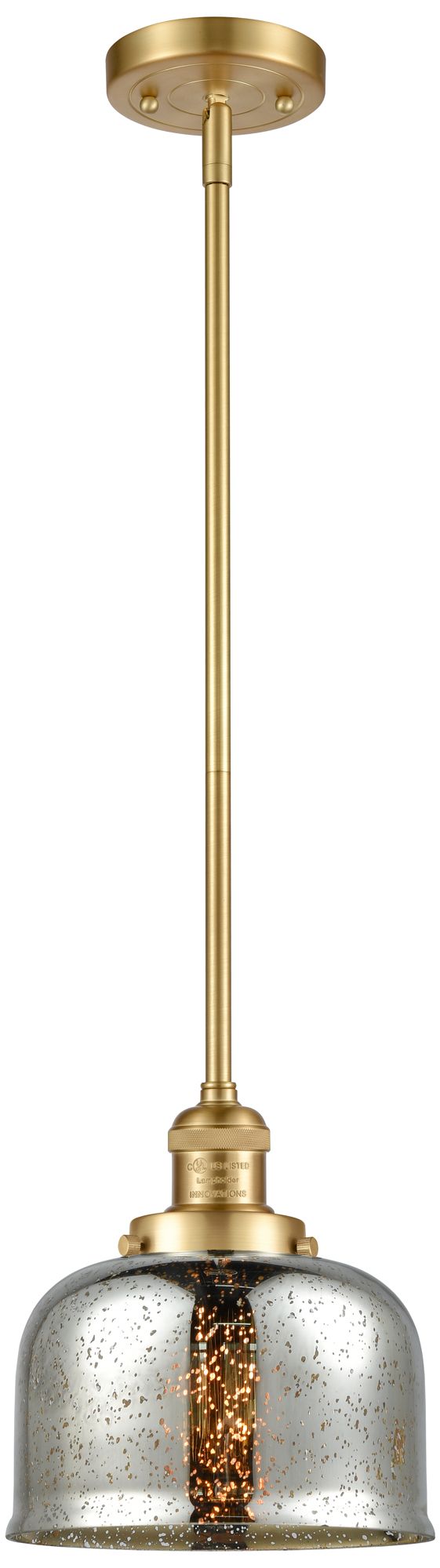 Franklin Restoration Bell 8" Gold Stemmed Mini Pendant w/ Mercury Shad