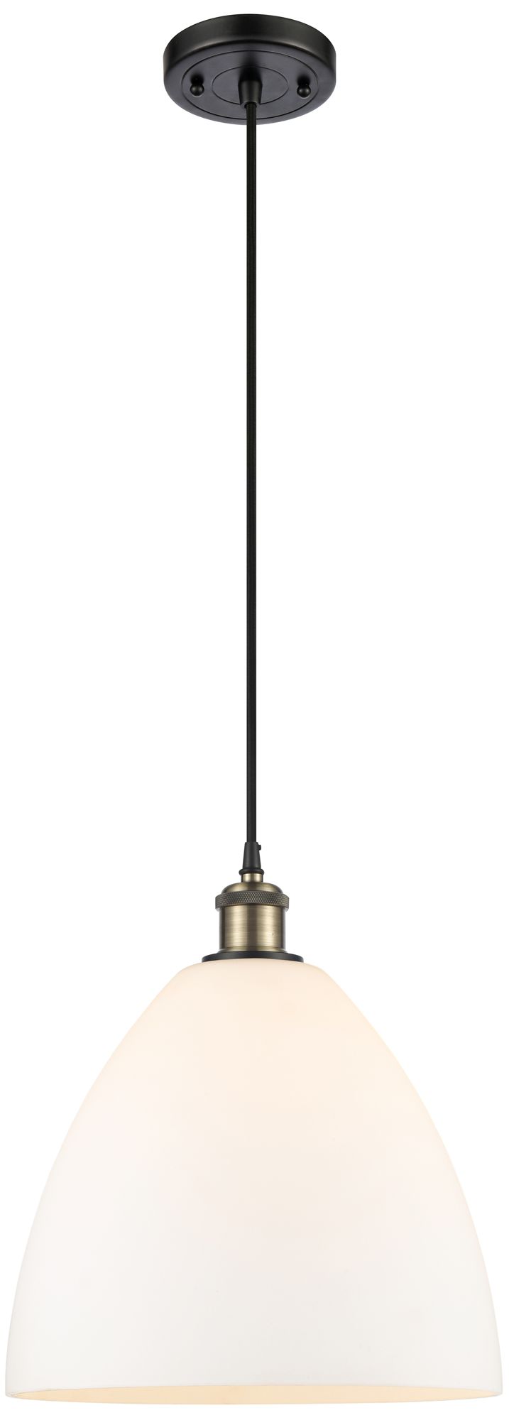 Ballston Bristol Glass 12" LED Mini Pendant - Black Brass - Matte Whit