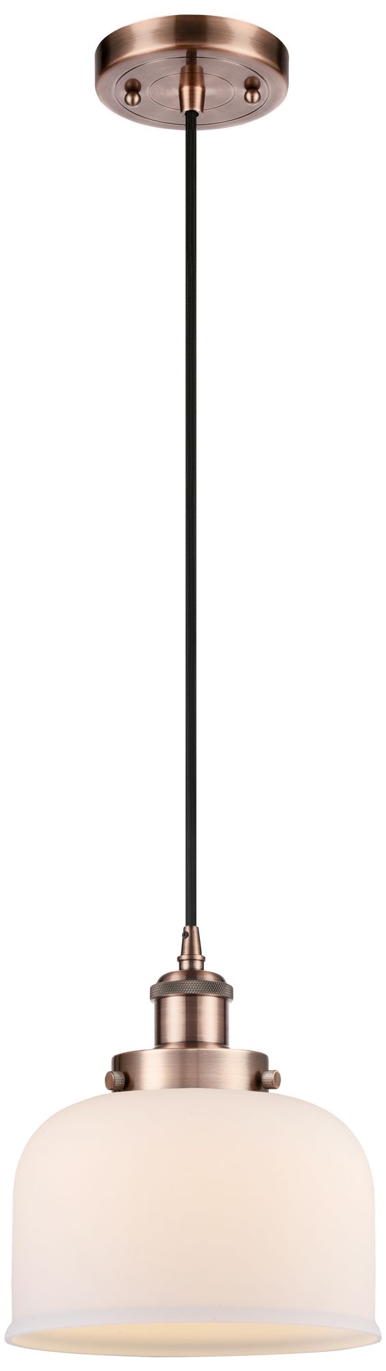 Ballston Urban Bell 8" Antique Copper Corded Mini Pendant w/ White Sha
