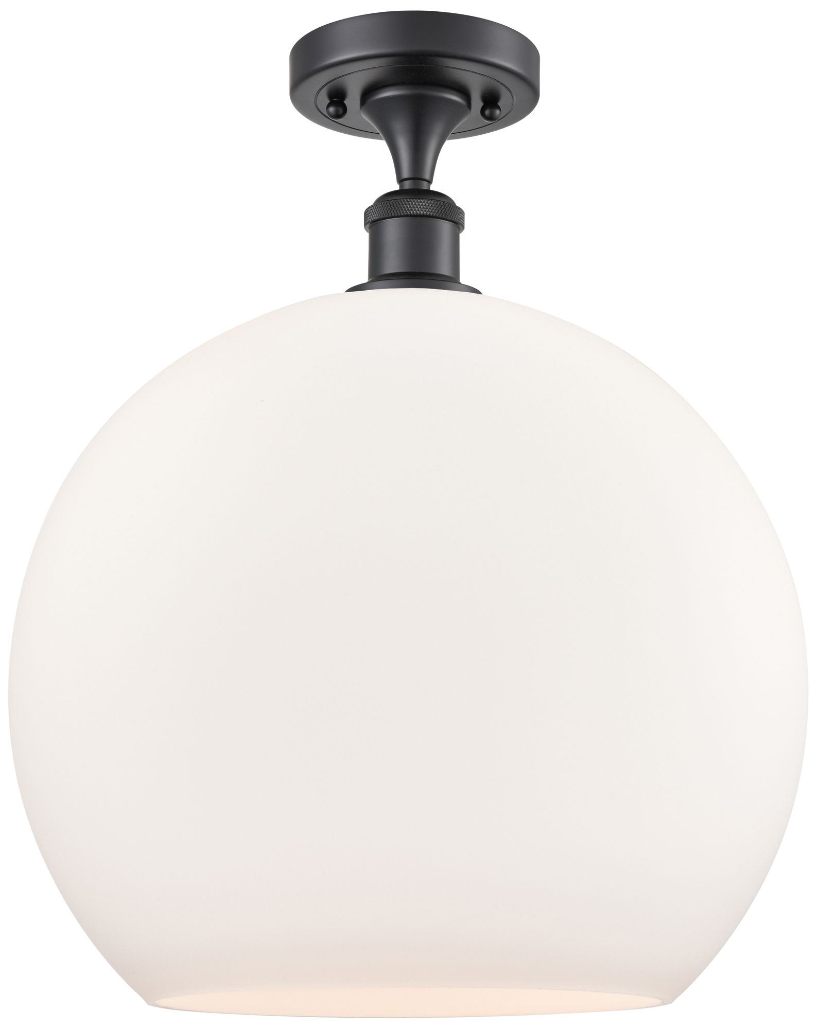 Athens 14" Semi-Flush Mount - Matte Black - Matte White Shade
