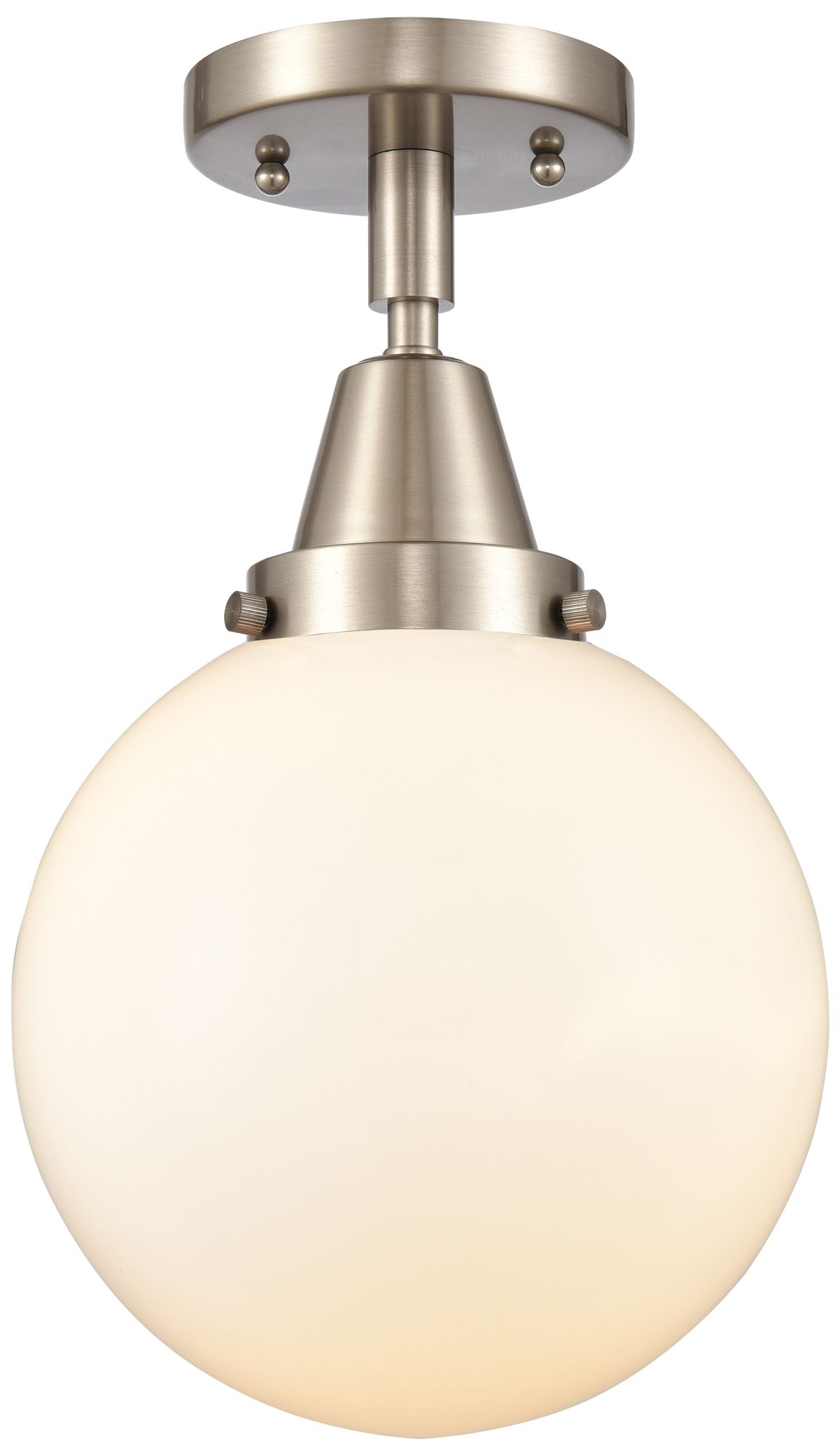 Caden Beacon 8" LED Flush Mount - Brushed Satin Nickel - Matte White S