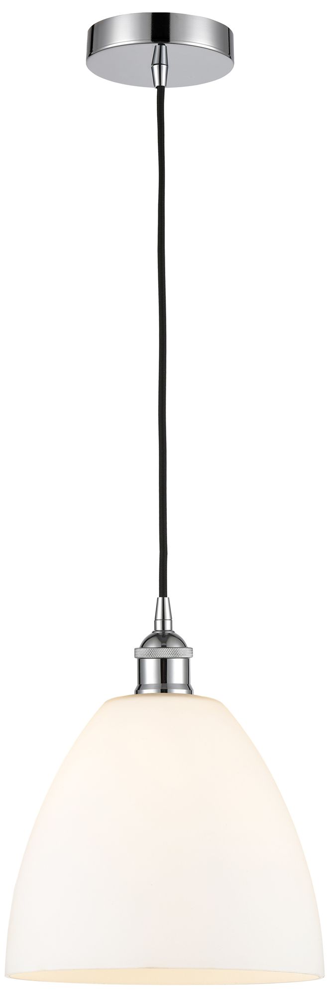 Edison Dome 9" Polished Chrome Cord Hung Mini Pendant w/ Matte White S