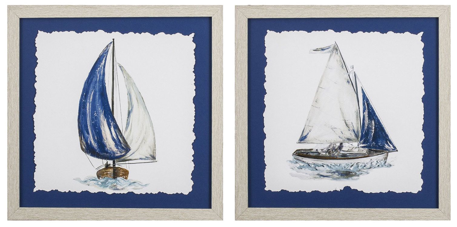 Navy Sail 15"W x 15"H Framed Art Set of 2