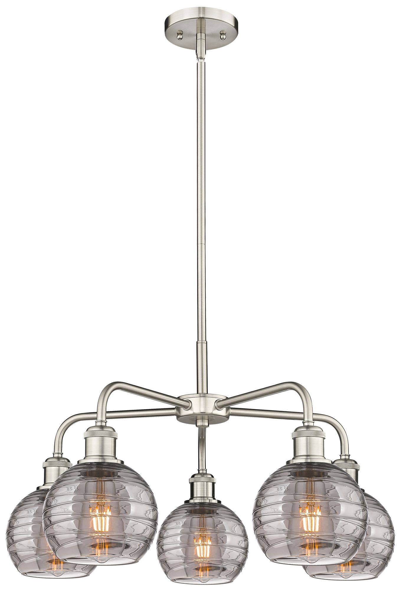 Athens 23.88"W 5-Light Satin Nickel Stem Chandelier w/ Smoke Swirl Sha