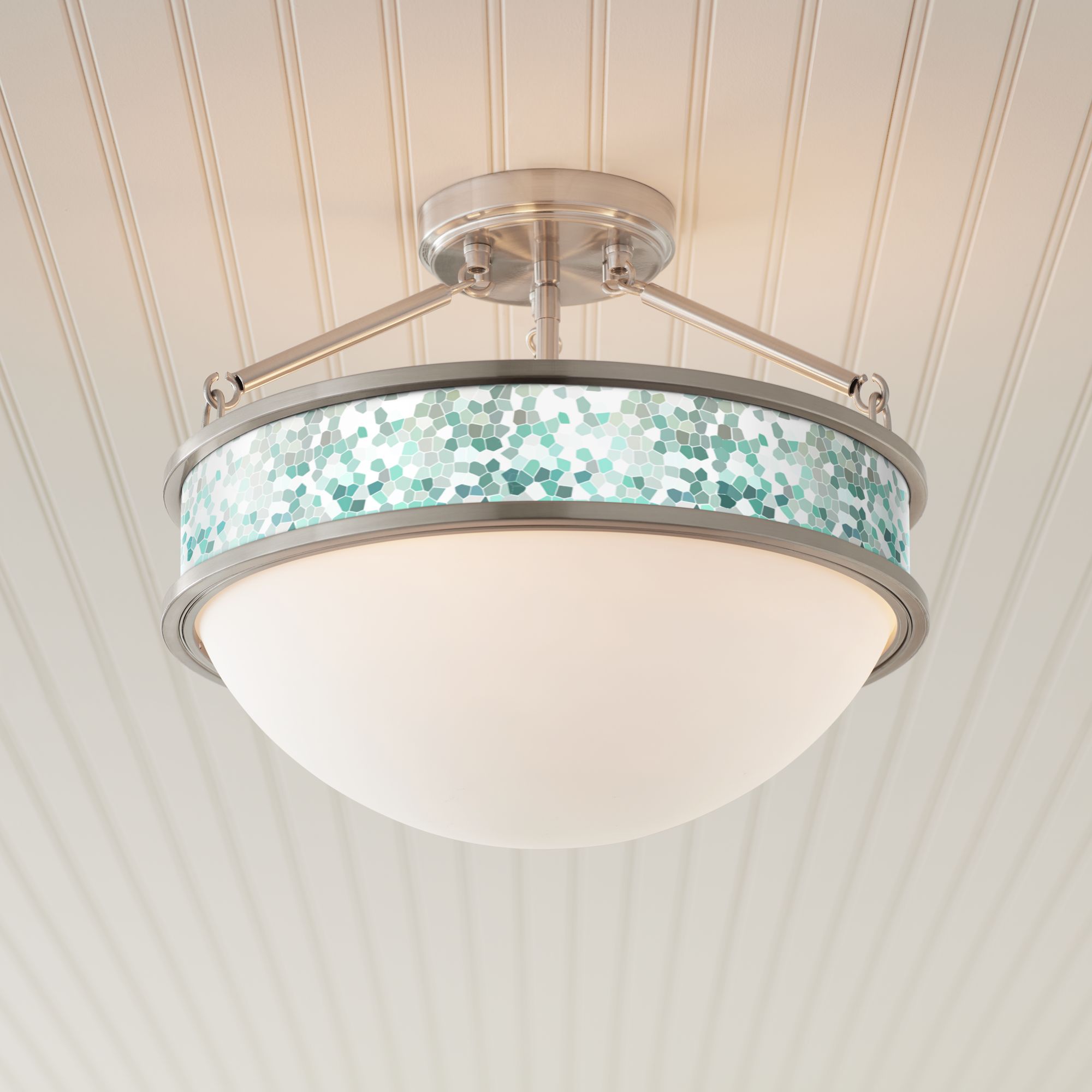 Aqua Mosaic Banded 16" Wide Brushed Nickel Ceiling Light