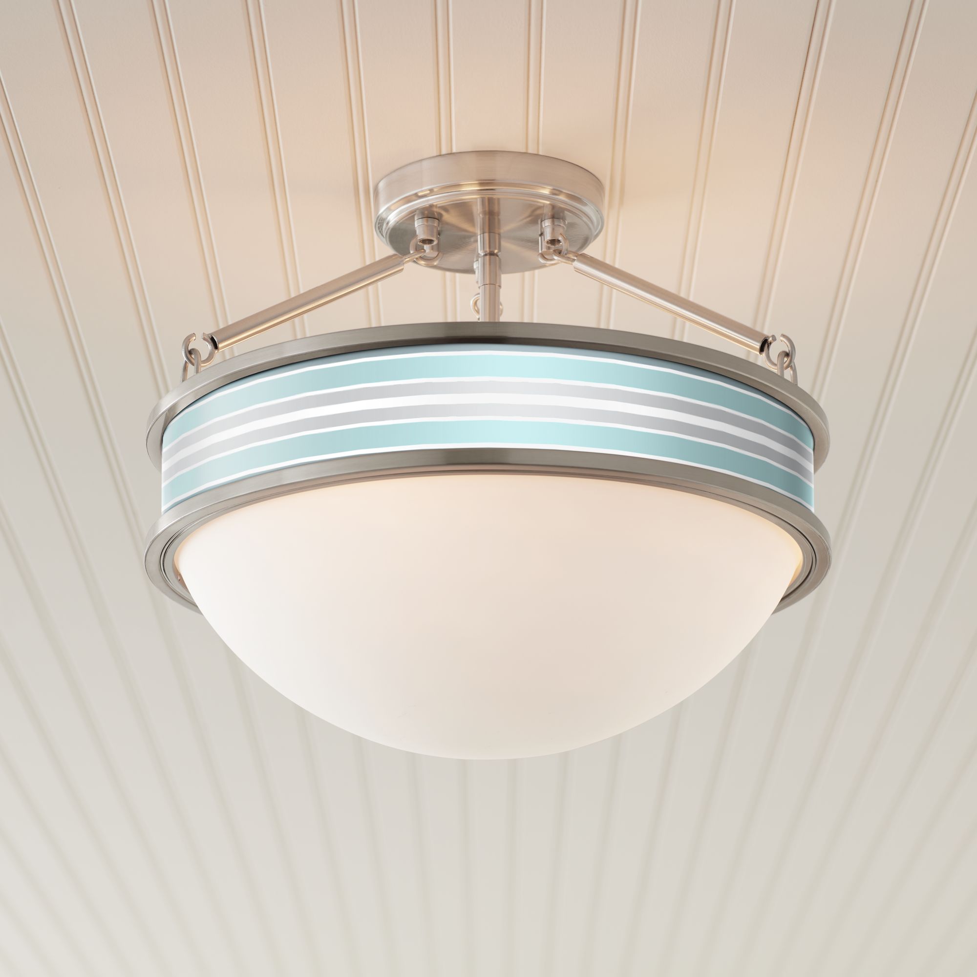 Multi Color Stripes Banded 16"W Brushed Nickel Ceiling Light