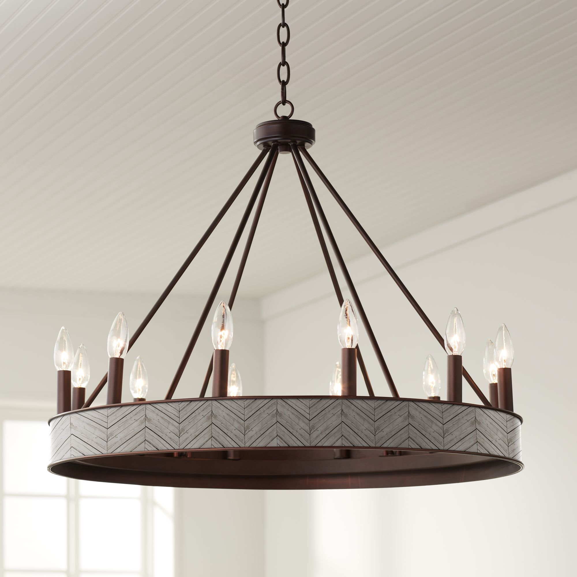 Antique Woodwork Jessa 29 1/2" Wide Bronze Wheel Chandelier