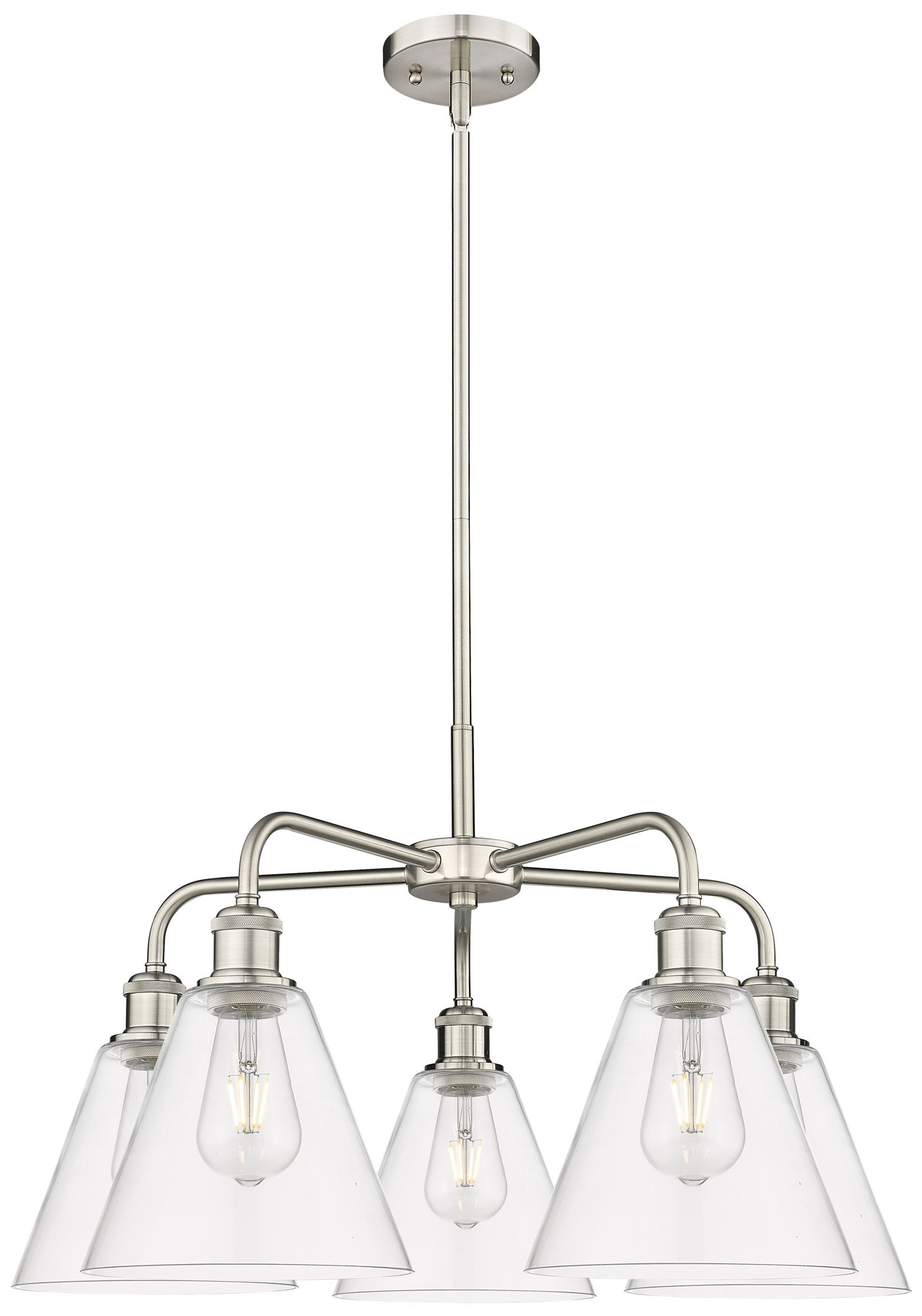 Berkshire 26"W 5 Light Satin Nickel Stem Hung Chandelier With Clear Sh