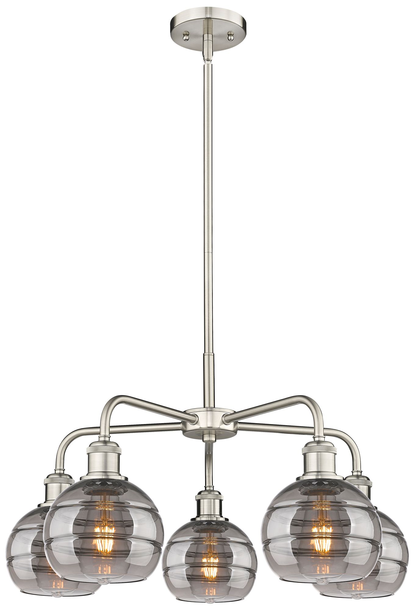 Rochester 23.88"W 5-Light Satin Nickel Stem Chandelier w/ Smoke Shade