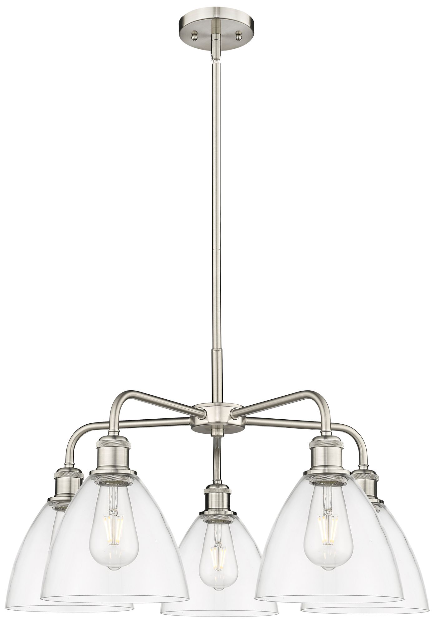 Bristol Glass 25.5"W 5 Light Satin Nickel Stem Chandelier w/ Clear Sha