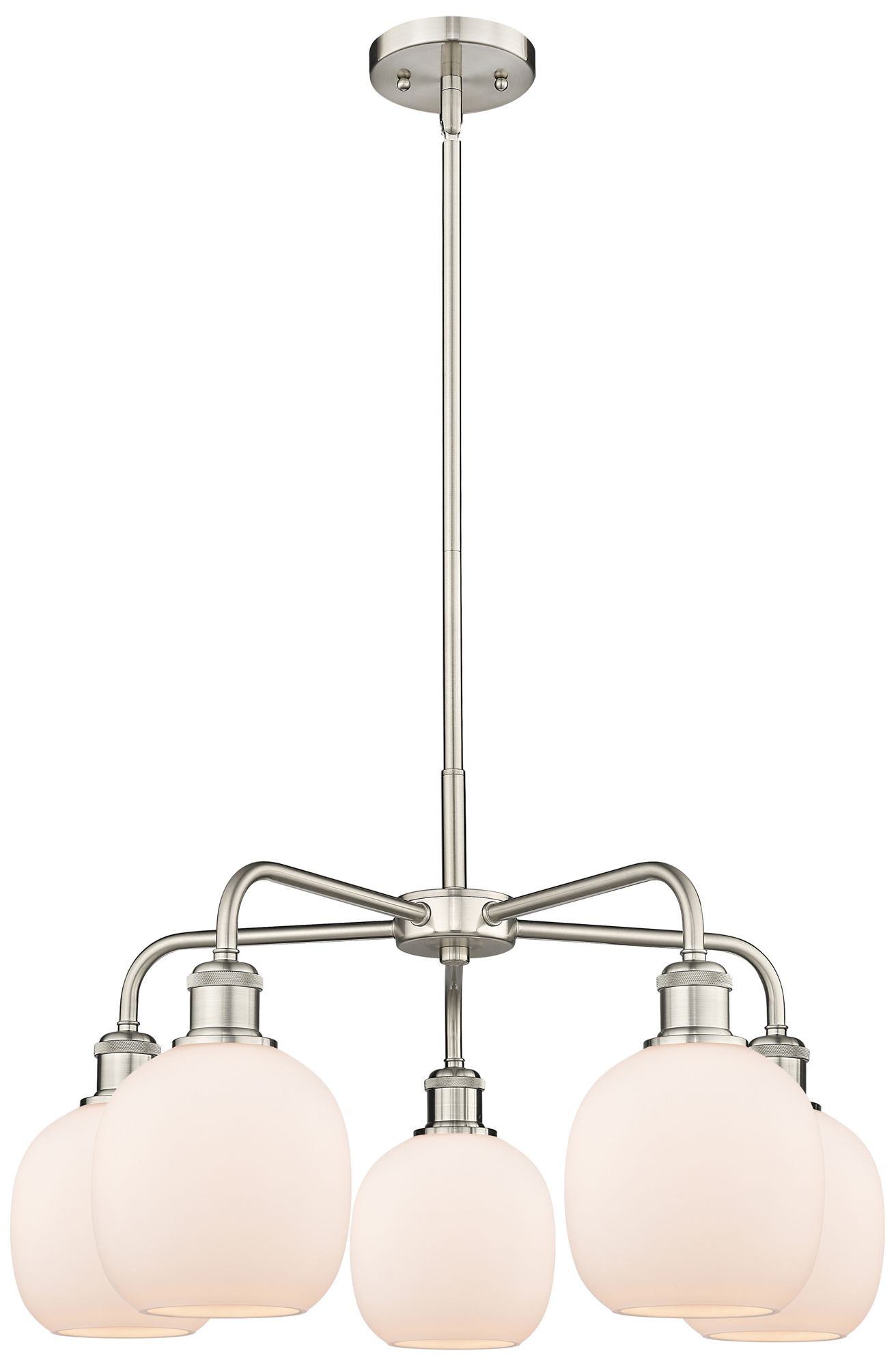 Belfast 24"W 5 Light Satin Nickel Stem Hung Chandelier With White Shad