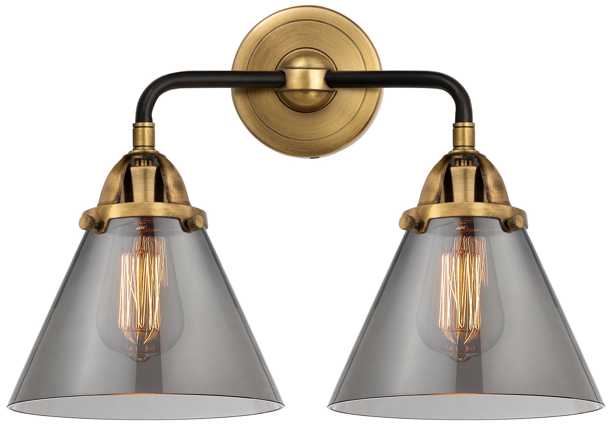 Nouveau 2 Cone 8" 2 Light 16" LED Bath Light - Black Brass - Smok
